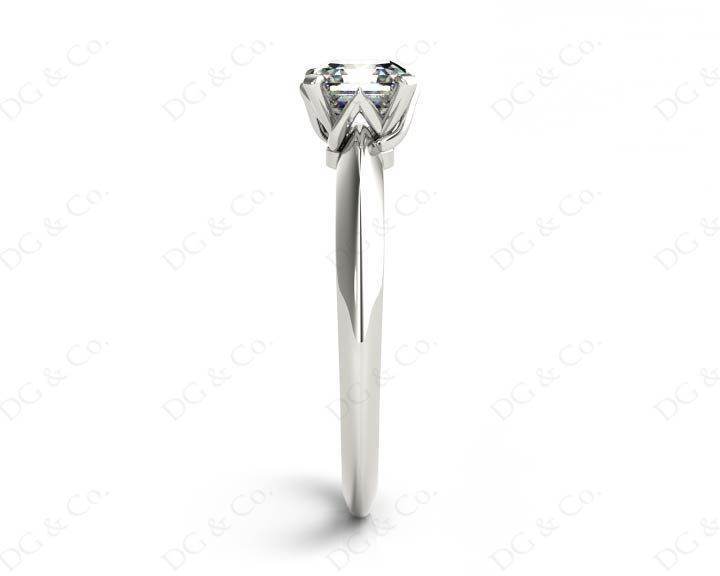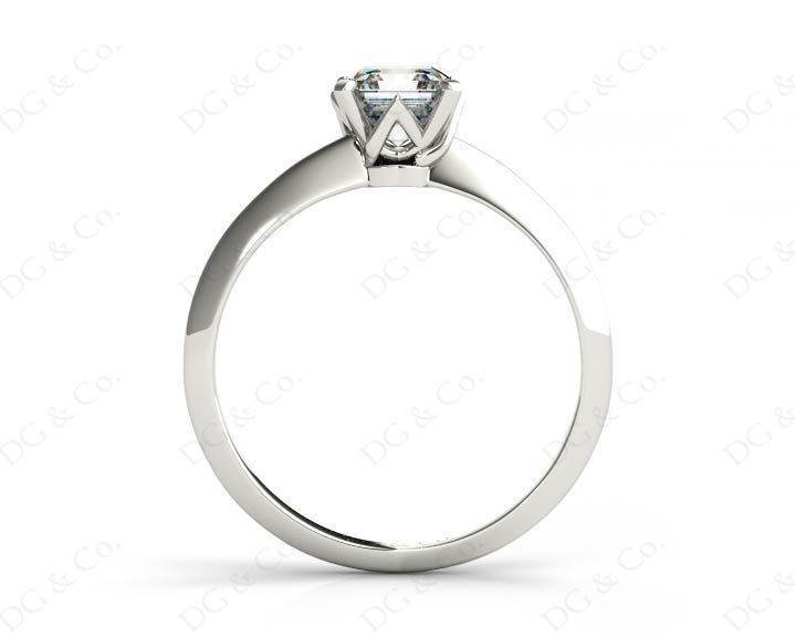 Asscher Cut Four Claw Set Diamond Engagement Ring on a Plain Knife Edge Band.