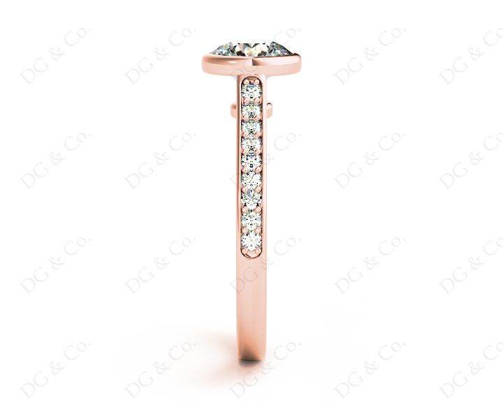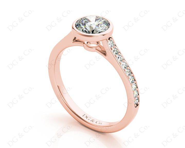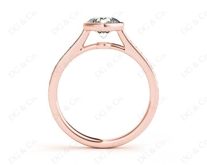 Engagement Ring with a Round Cut Diamond Bezel set in the centre and Eighteen brilliant Cut Diamonds Channel Set into the Shoulders.