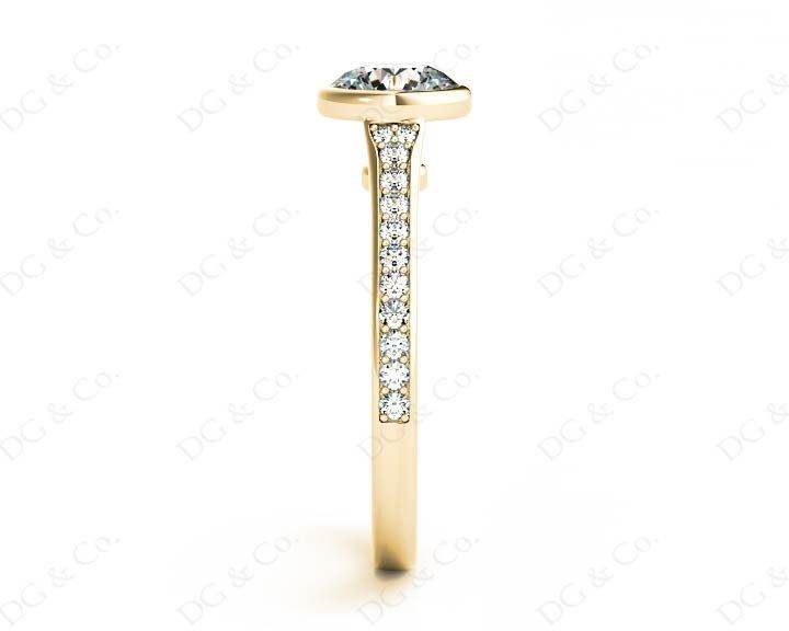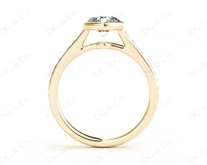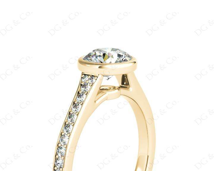 Diamond Engagement Ring with a Round Cut Diamond and Channel Set Diamonds Down the Shoulders.