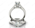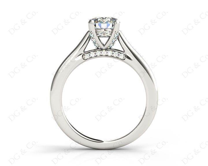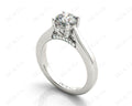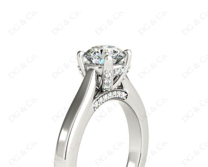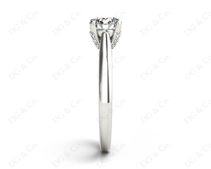 Solitaire Engagement Ring with a Round Cut Diamond in a Four Claws Setting with Square Edge Shoulders and Side Stone Diamonds.