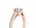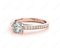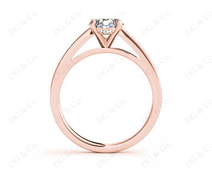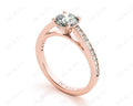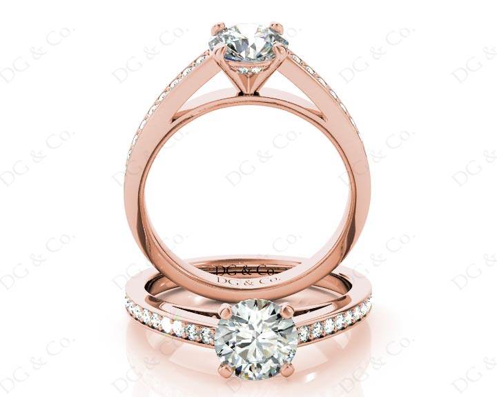 Engagement Ring with a Round Cut Diamond Four Claws Set in the Centre and Twenty-four Round cut Diamonds Share Prongs Set into the Shoulders.