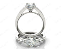 Engagement Ring with a Round Cut Diamond Four Claws Set in the Centre and Twenty-four Round cut Diamonds Share Prongs Set into the Shoulders.