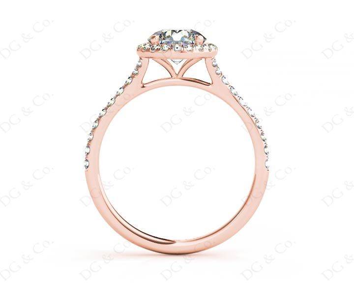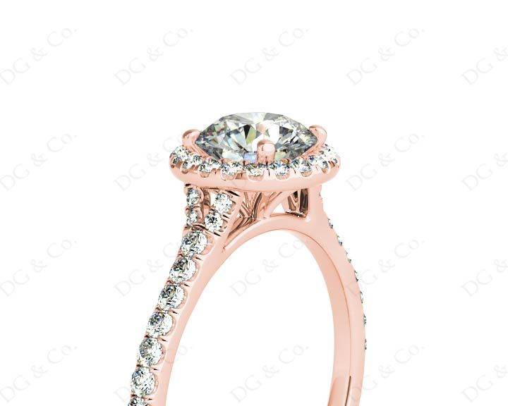 Round Cut Diamond Engagement Ring with Round Cut Diamonds Scallop Set on the Halo and Down the Shoulders.