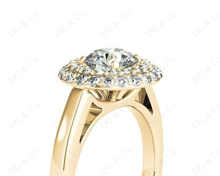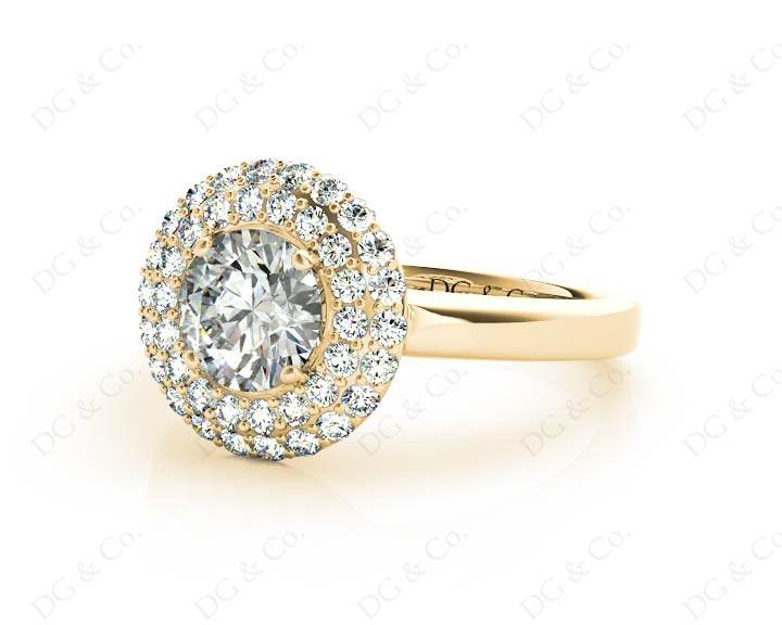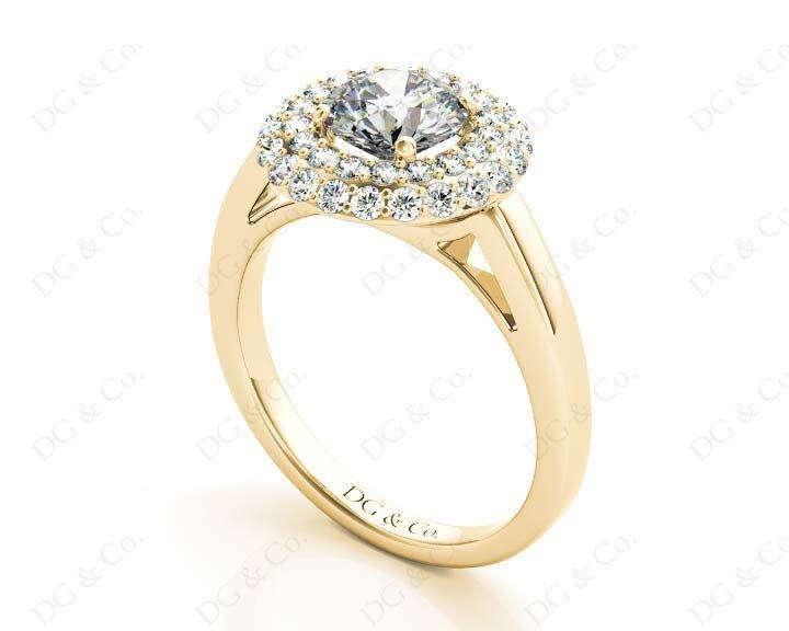 Double Halo Diamond engagement ring plain band with forty Round cut diamond pave setting around the Centre Stone.