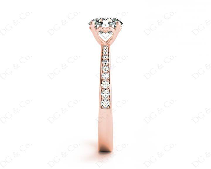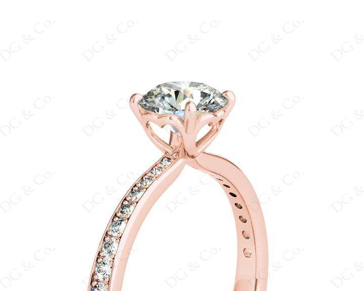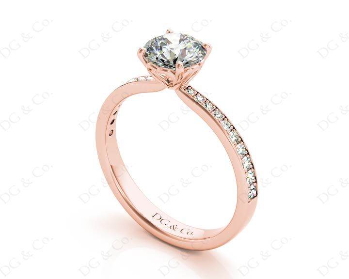 Round Cut Four Claw Love Heart Motif Setting Diamond Engagement Ring on a Pave Set Diamonds Down the Slightly Tapered Band.