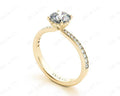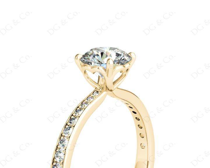 Round Cut Four Claw Love Heart Motif Setting Diamond Engagement Ring on a Pave Set Diamonds Down the Slightly Tapered Band.