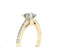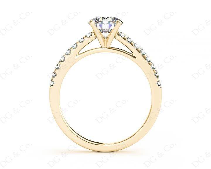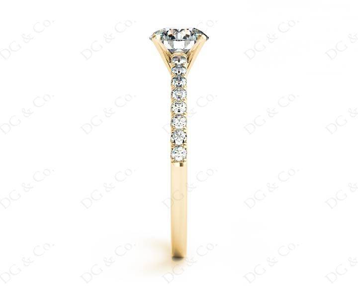 Round Cut Four Claw Set Diamond Engagement Ring with Round Cut Diamonds Pave Set Down the Shoulders.