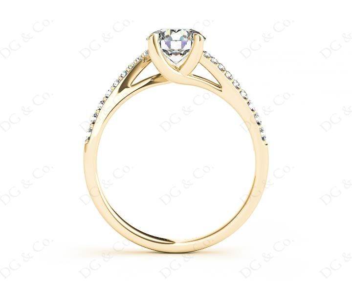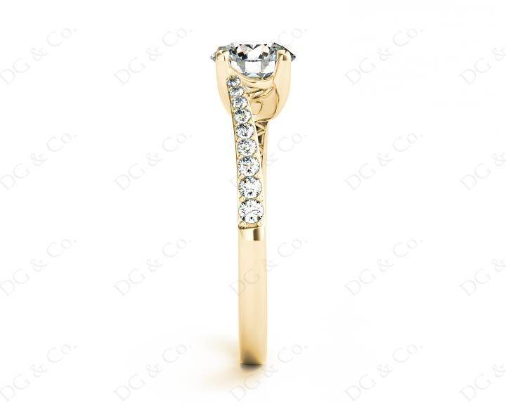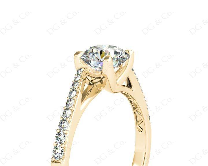 Diamond Engagement Ring with Round Cut Diamonds Pave Set Stones Down the Shoulders.