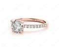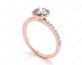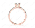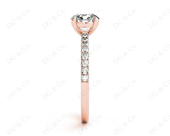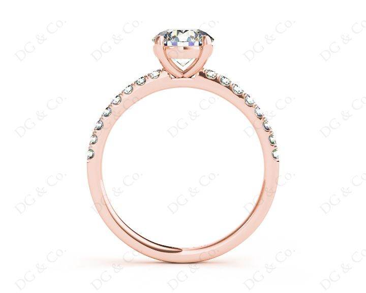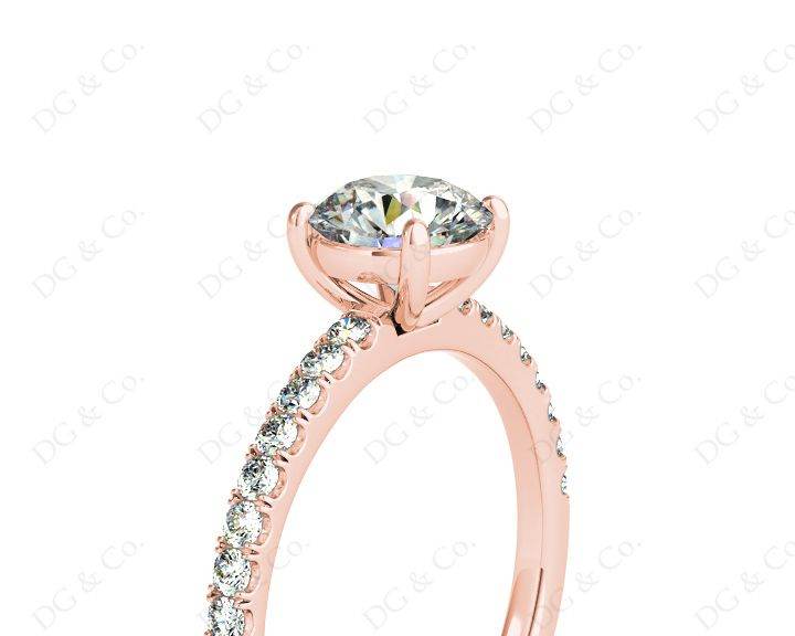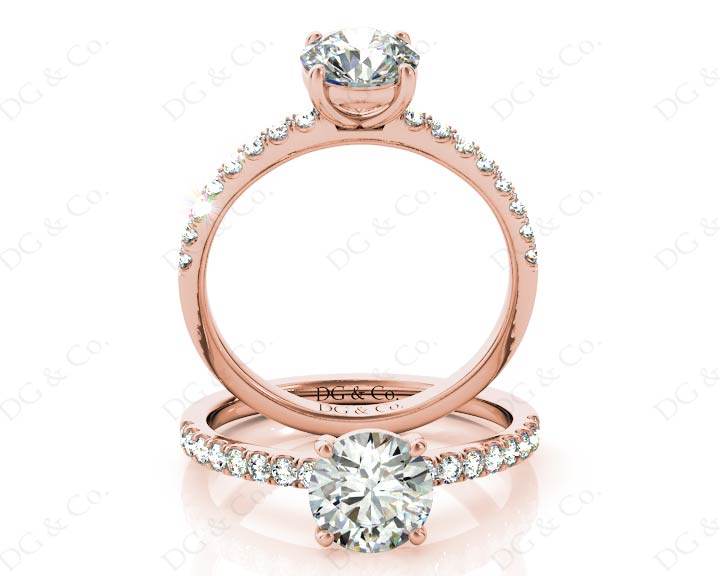 Engagement Ring with a Round Cut Diamond in a Four Claws Setting and Sixteen Round Cut Diamonds Channel set into the Shoulders.
