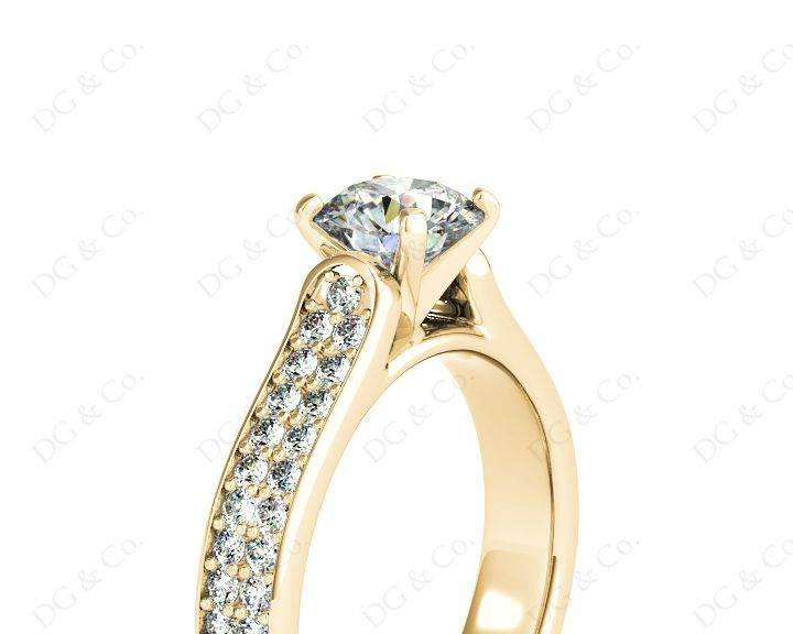 Diamond Engagement Ring Four Claws V Setting with Double Row Diamond pave set in to the shoulders .