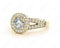 Halo Diamond Engagement Ring Split Band with Round Round Cut Diamond Four Claw Setting Surrounded with Sixty-Four Round Diamond Channel Share Prong Setting around the Centre Stone and Down the Shoulder.