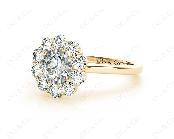 Halo Diamond engagement ring with plain band with ten Round cut diamond claws setting around the Centre Stone.