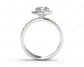 Round cut halo diamond engagement ring with four claw setting in 18K White