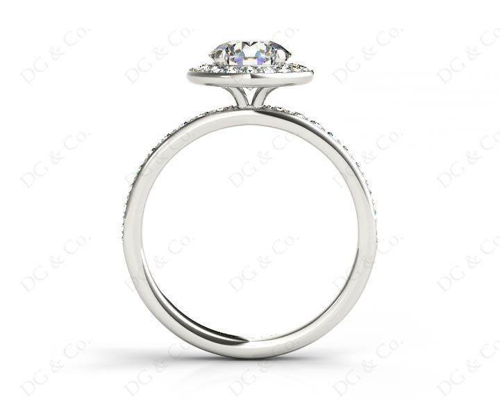 Round cut halo diamond engagement ring with four claw setting in Platinum - DG & Co. Jewellery