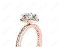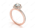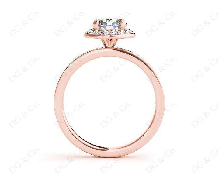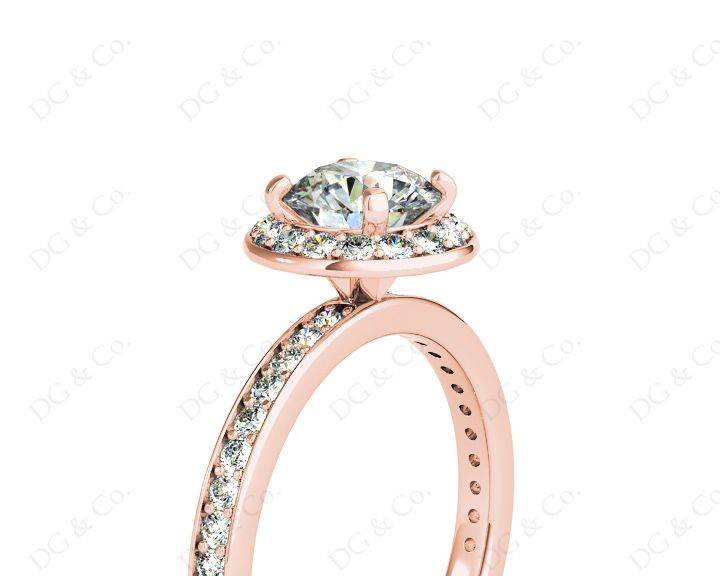 Halo Engagement Ring with a round Cut Diamond in Four Claws Setting with Forty Round Cut Diamonds Channel Set around the Centre Stone and Down the Shoulders.