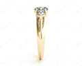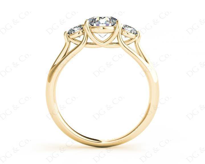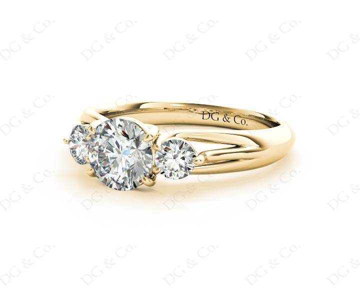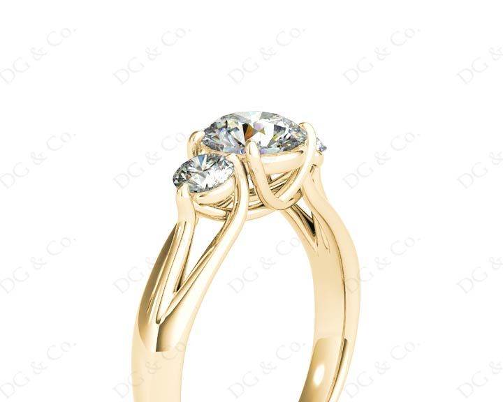 Three-stone Engagement Ring with three brilliant cut diamonds in cross-over claw settings with upswept shoulders.