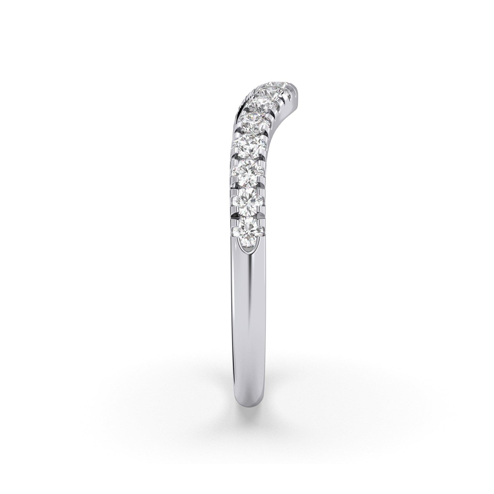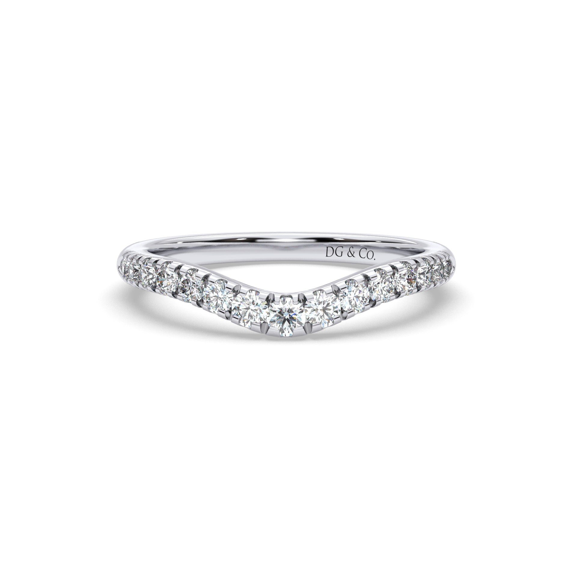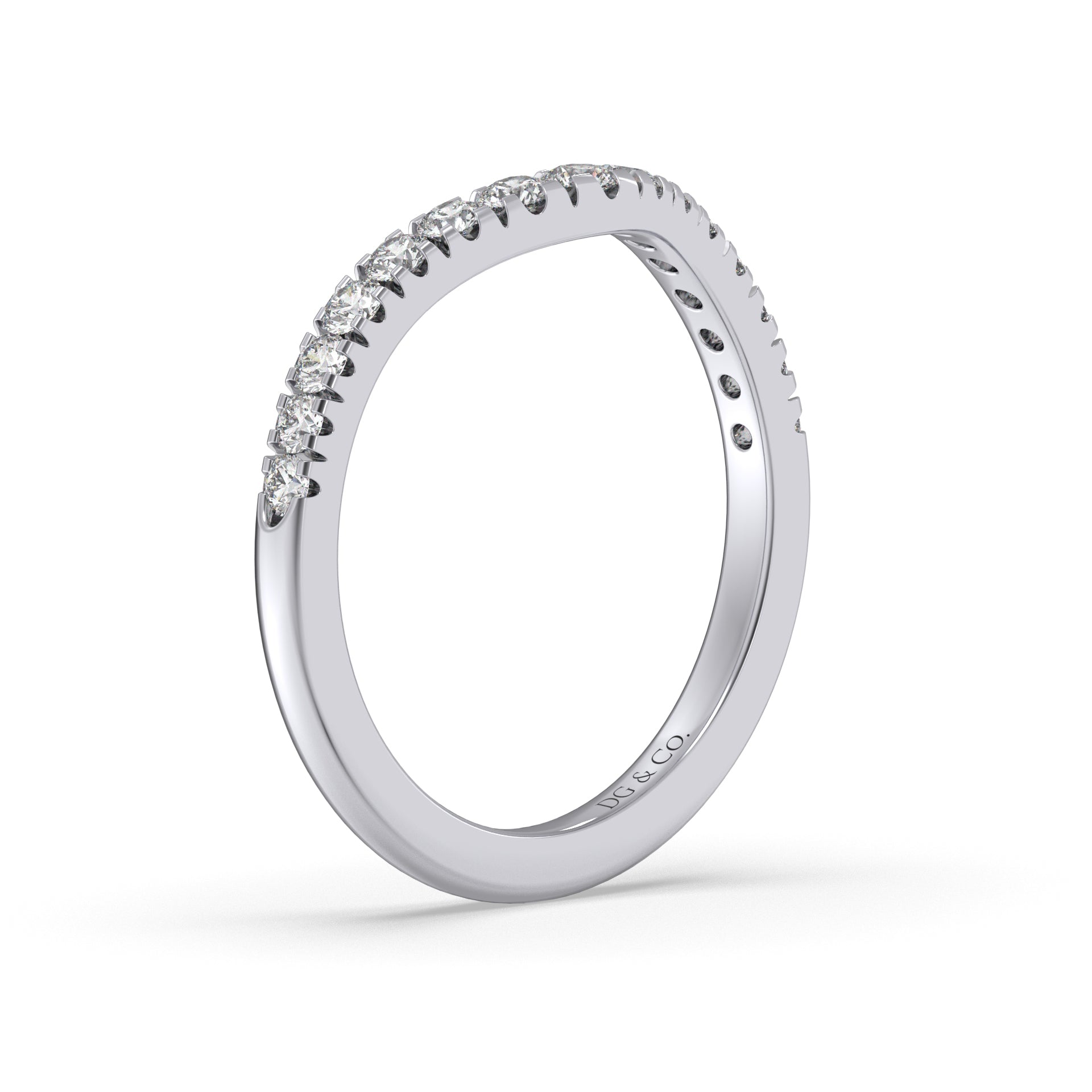 Every engagement ring deserves a fitting match. This beautifully crafted ring features a row of brilliant pavé diamonds that curves delicately around your center stone.