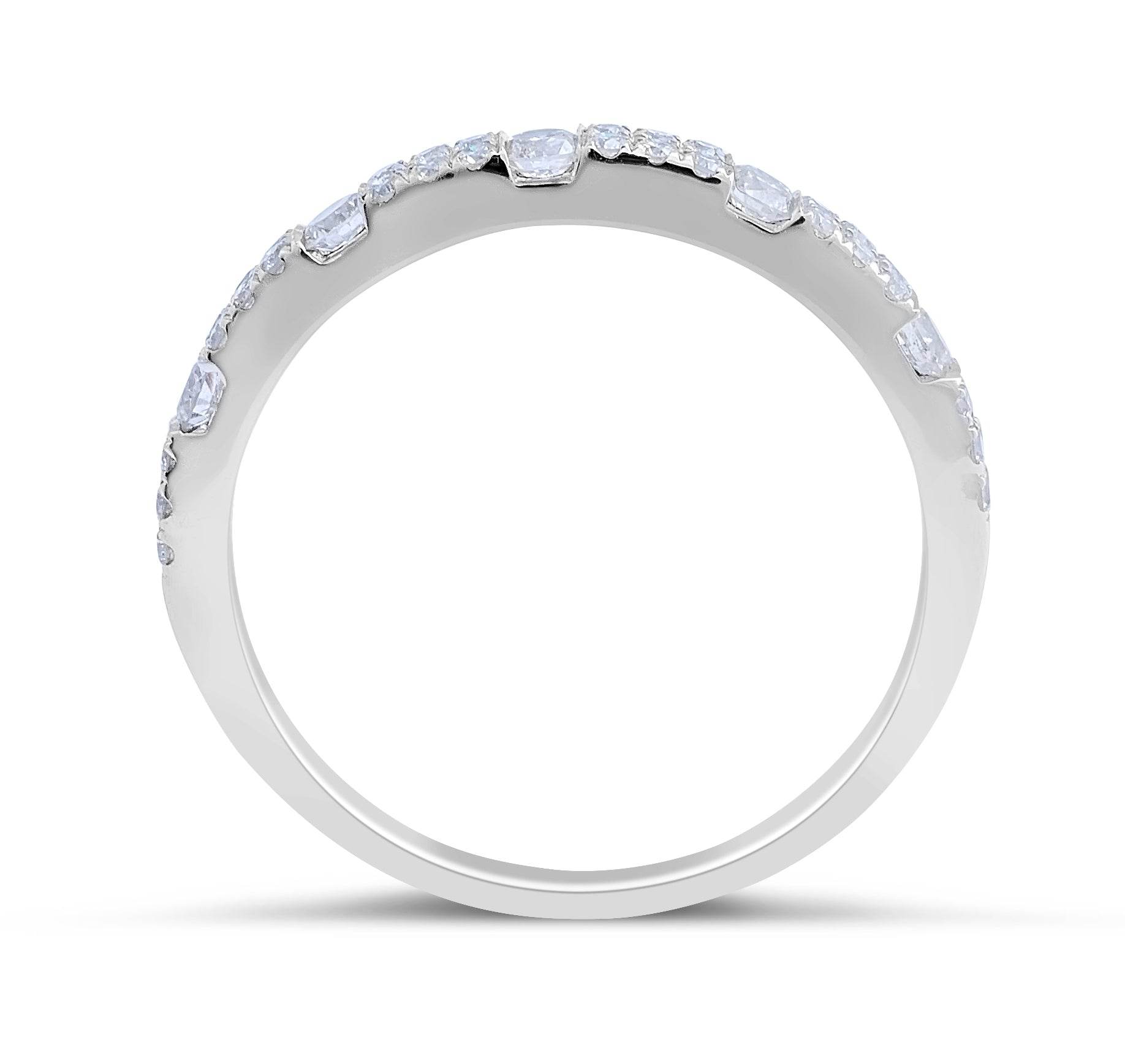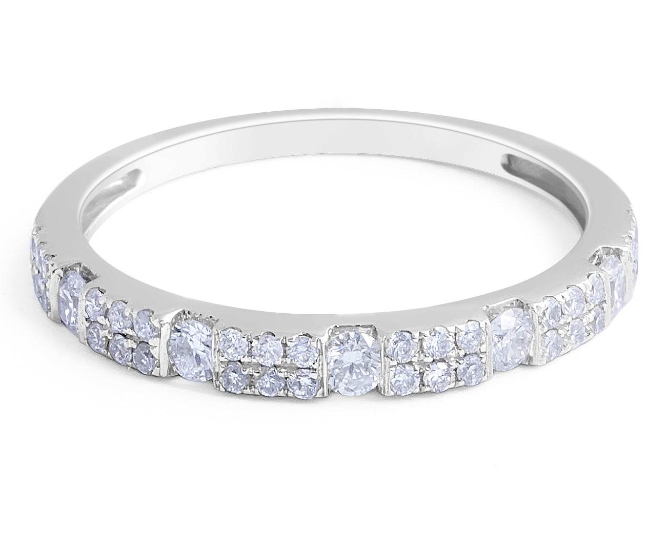 Classic Modern design 18 Karat White Gold Diamond Engagement ring beautifully set with 36 stunning round brilliant diamonds and 5 round brilliant diamonds in between totalling 0.40 Carat. The slim band and classic design makes a great ring to compliment your engagement ring.