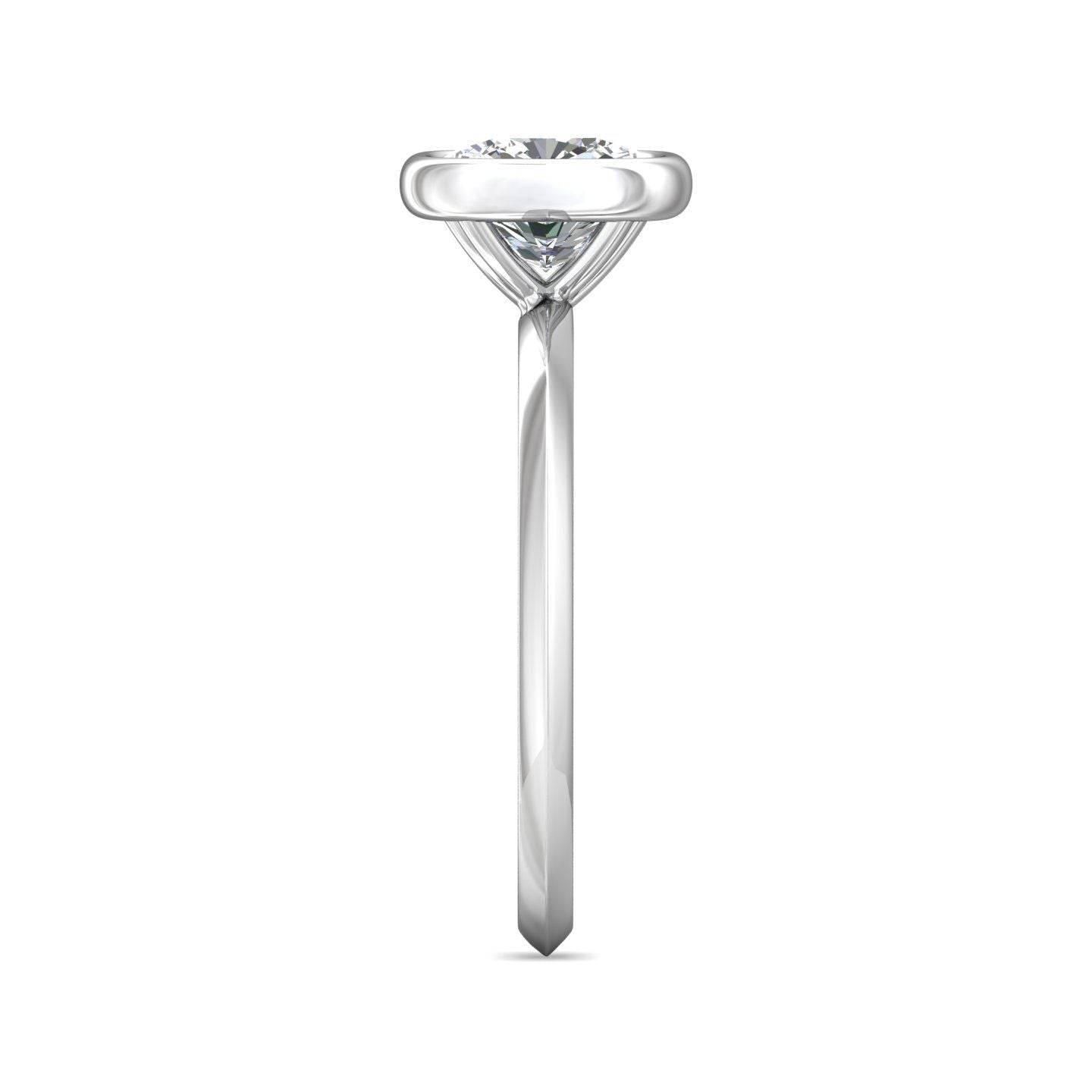 Cushion Cut Bezel Setting Diamond Engagement Ring In a Plain Knife Edge Band - 18K White