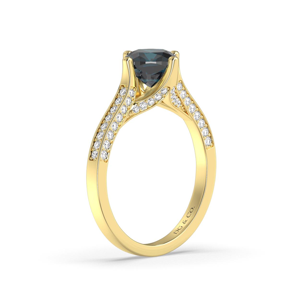 This dainty and romantic design features 3 side round brilliant cut diamonds as side stones in shared prong settings to showcase their true beauty and sparkle.