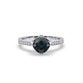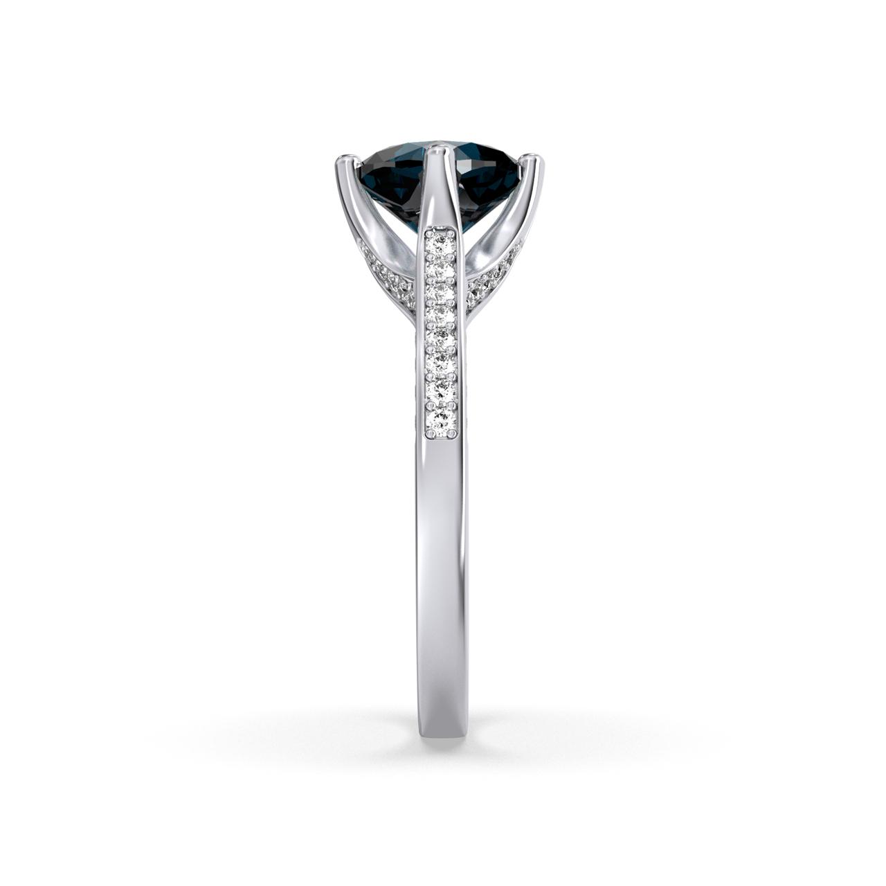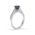 This dainty and romantic design features 3 side round brilliant cut diamonds as side stones in shared prong settings to showcase their true beauty and sparkle.