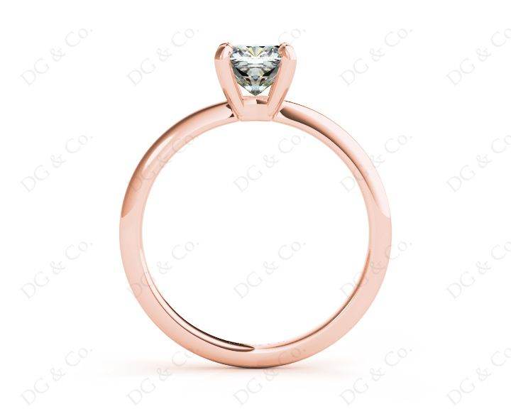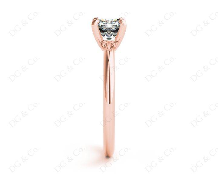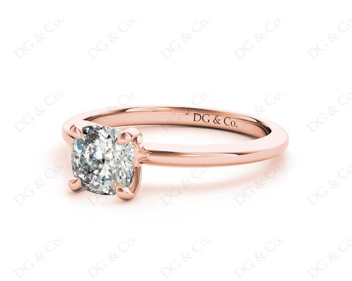 Solitaire Engagement Ring with Cushion Cut Diamond in a Four Claw Setting with Knife-Edge Shoulders.