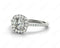 Halo Diamond Engagement Ring with Cushion Cut Diamond in Four Claws setting with Thirty-Six Round Brilliant Micro Pave Setting around the Centre Stone and Down the Shoulder.