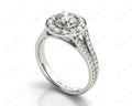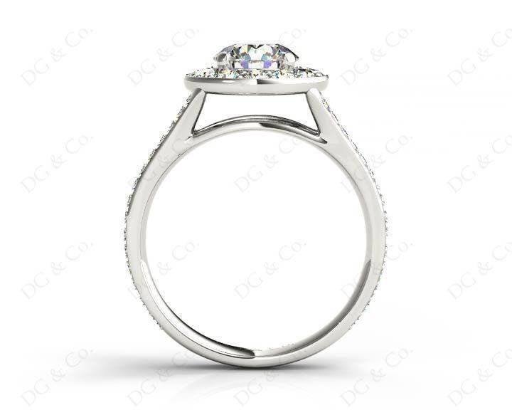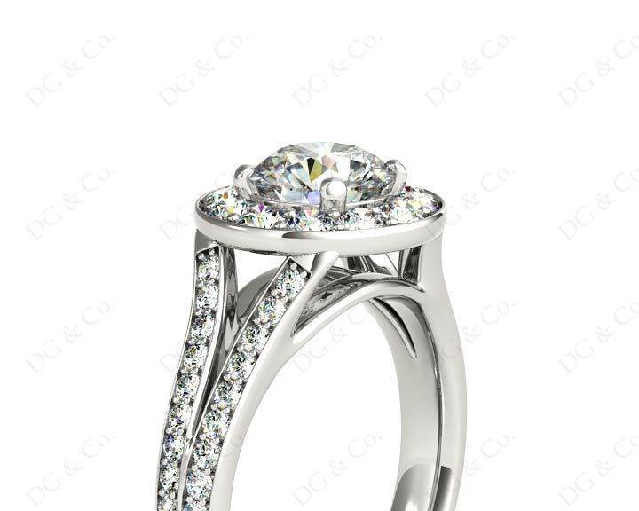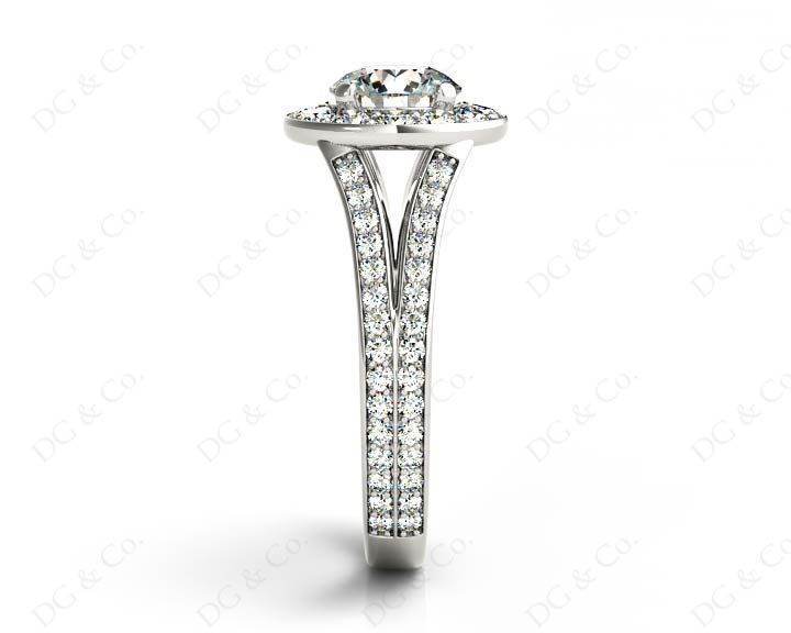 Halo Diamond engagement ring with split band with seventy-two Brilliant cut diamond pave setting around the Centre Stone and down the shoulders.