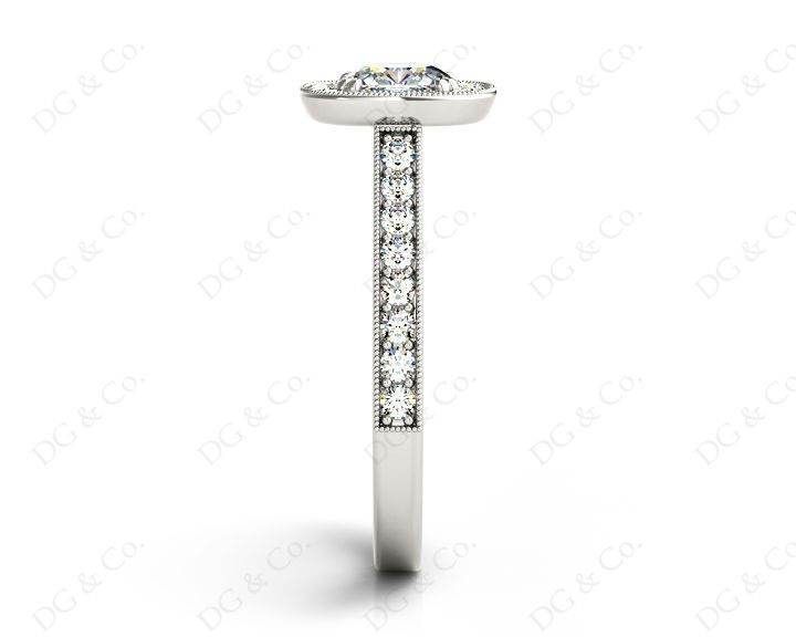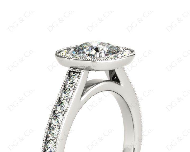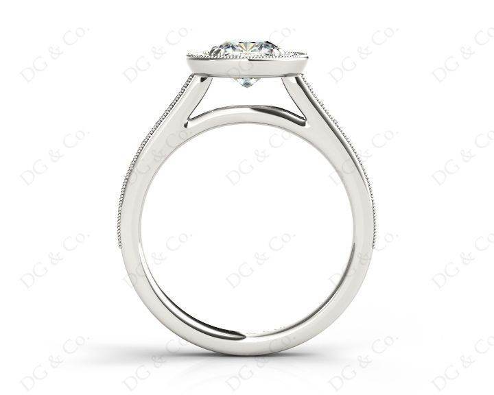Cushion Cut Halo Diamond Ring with Milgrain Prong Set Centre Stone - Platinum - DG & Co. Jewellery