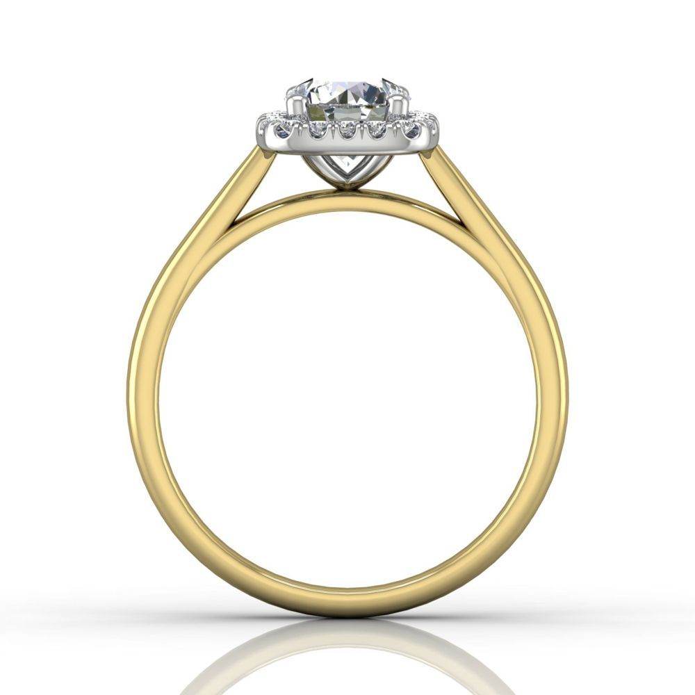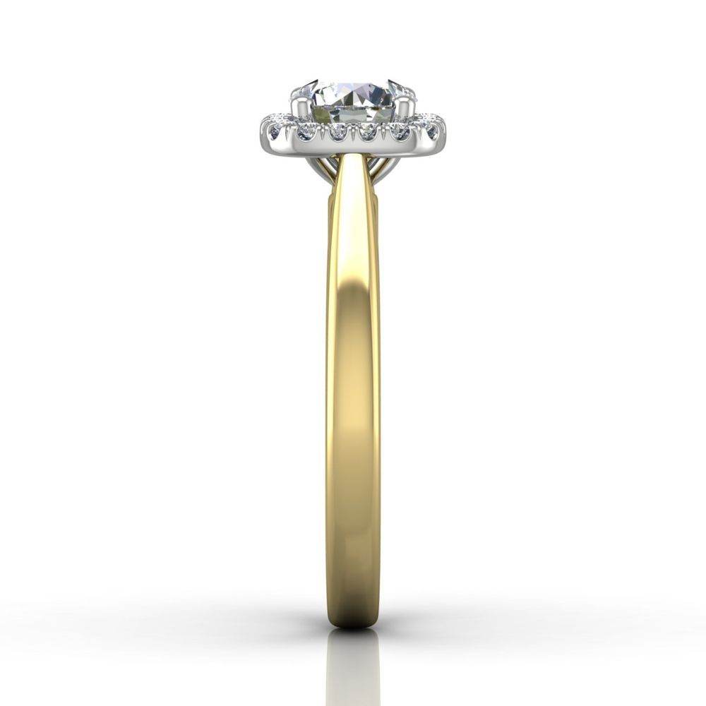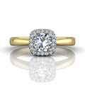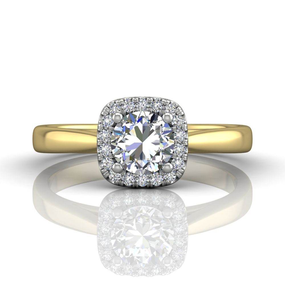The soft curves of this cushion-shaped halo diamond engagement ring feature a high polished plain tapered band perfectly frames your choice of cushion-cut centre diamond.