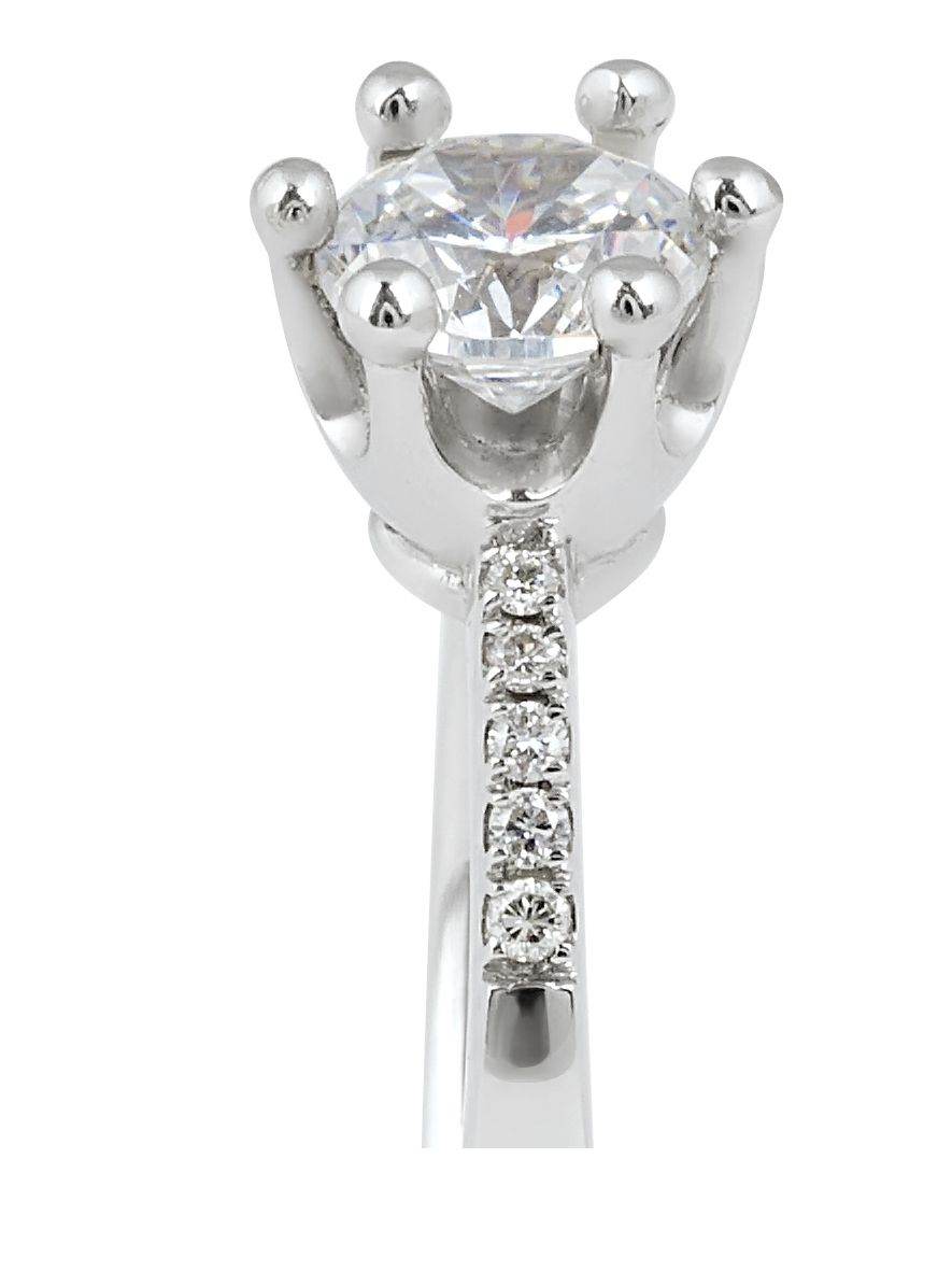 Crown Setting 6 Claw Diamond Engagement Ring Pave Setting Side Stones In 18K White gold