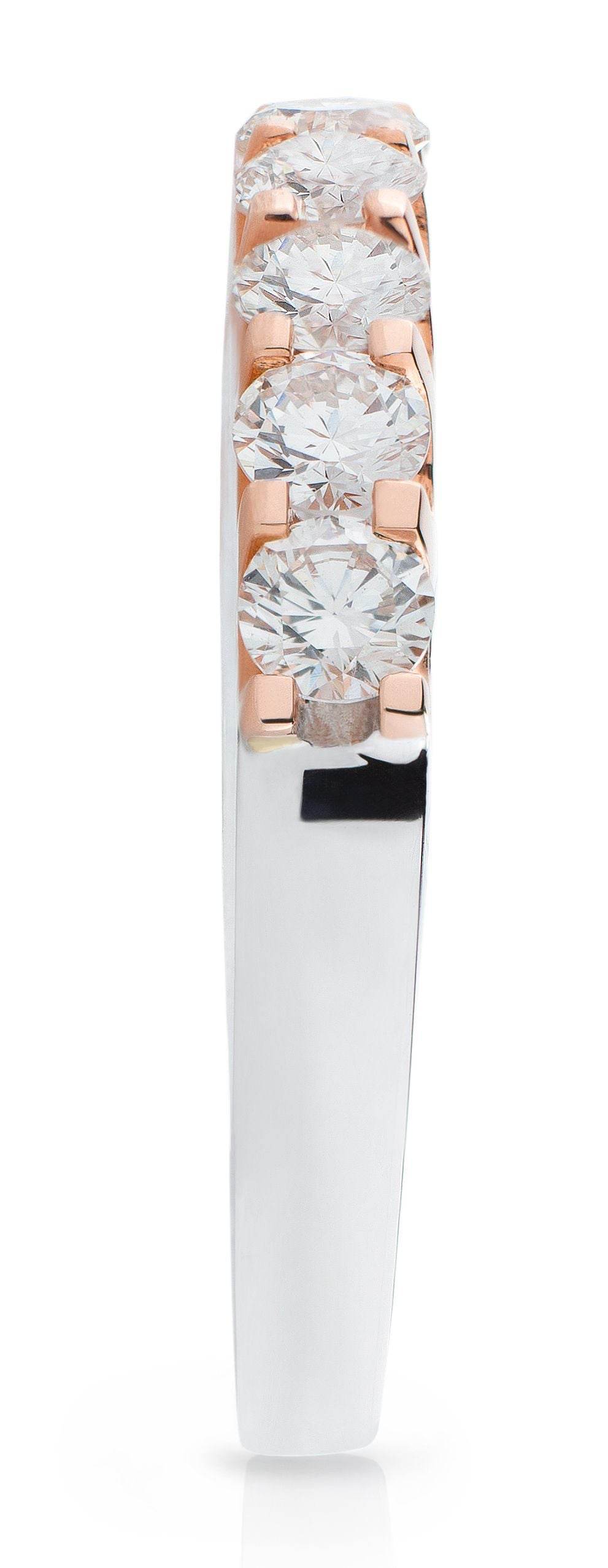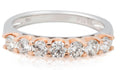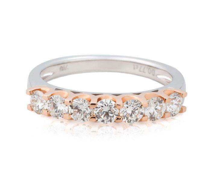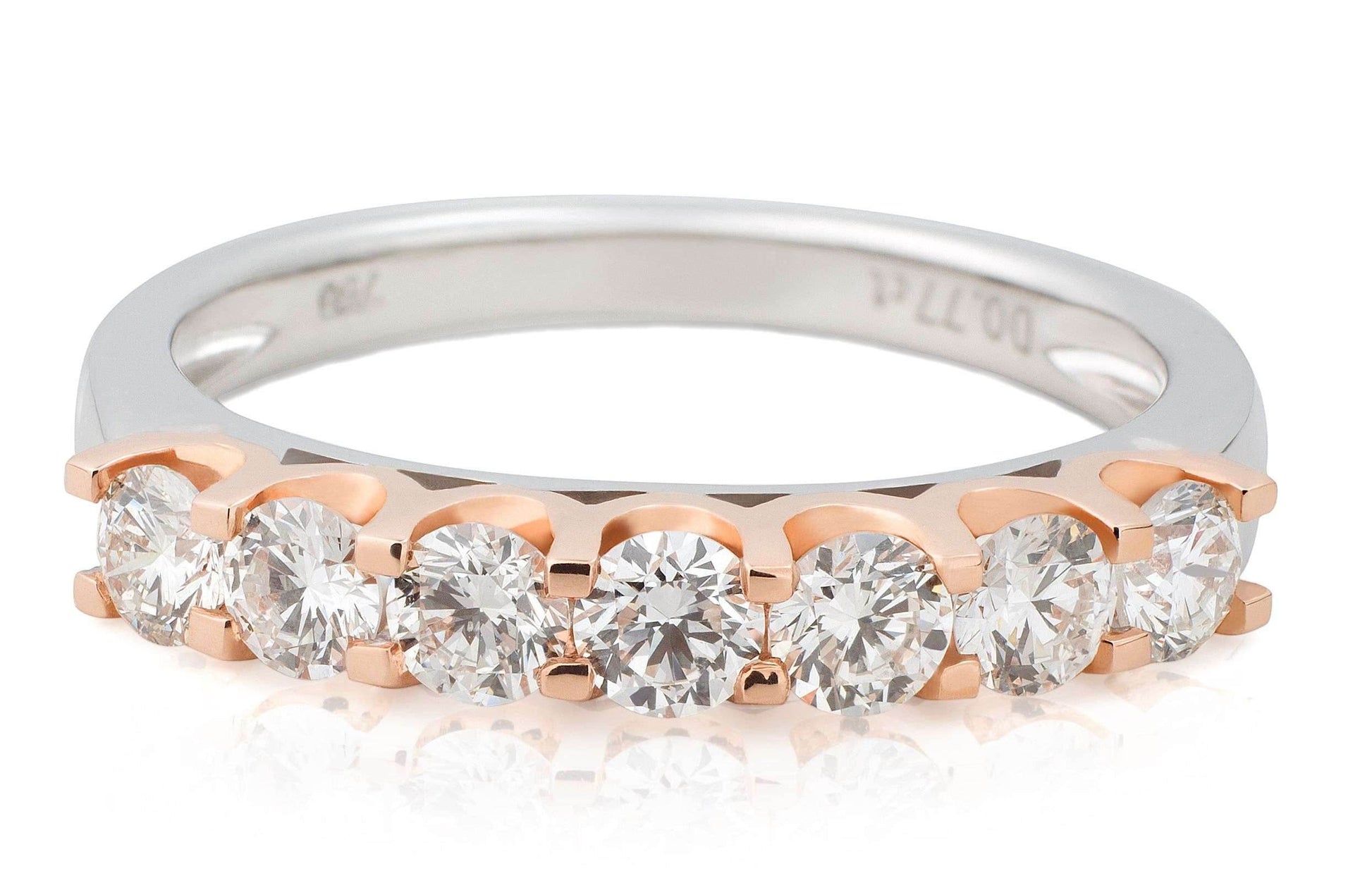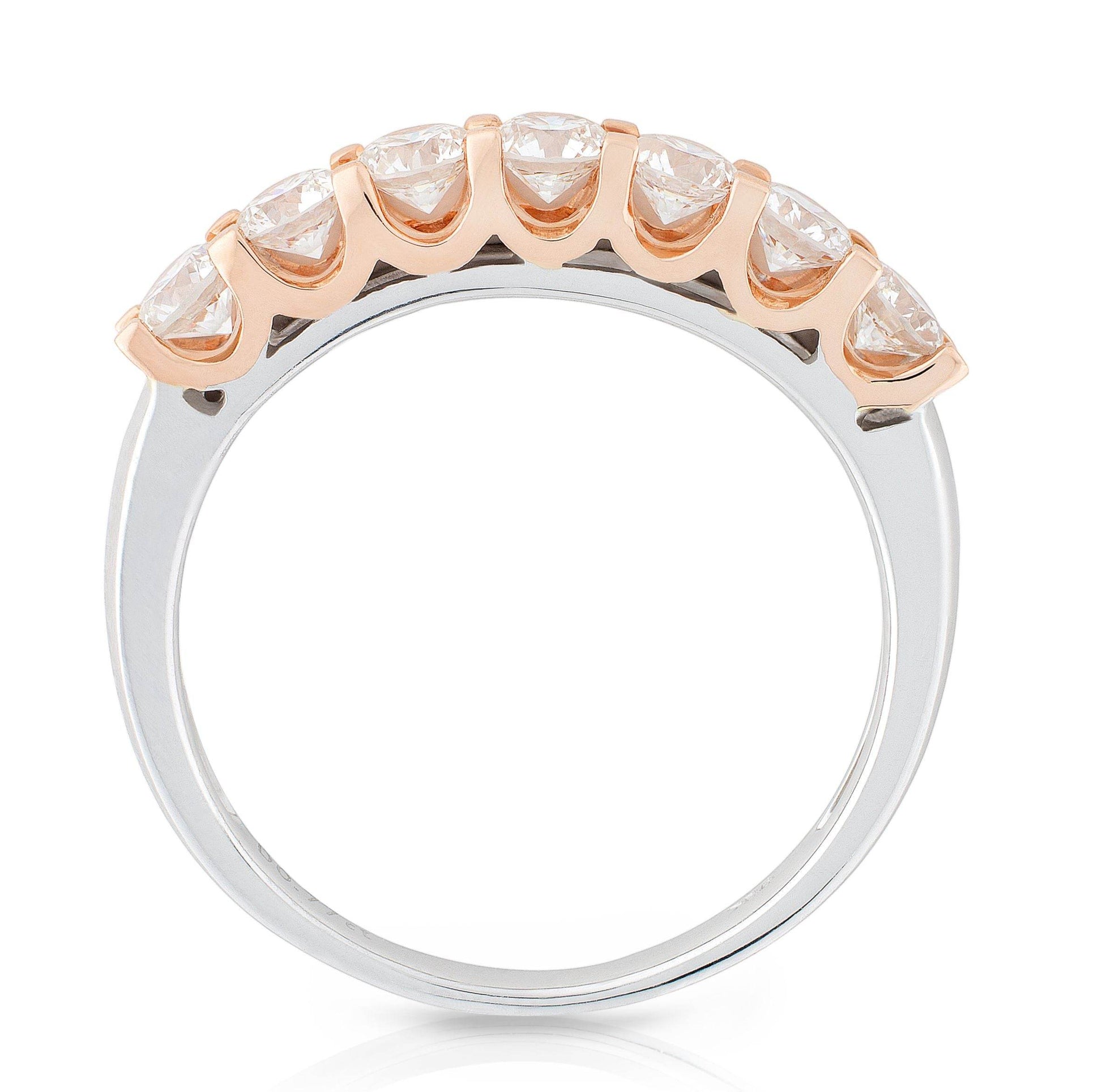 Sparkling from every angle, this eye-catching diamond ring showcases seven round brilliant cut diamonds dramatically set in 18 karat 2 tone rose and white gold.