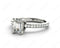 Engagement ring with a emerald cut diamond in a four claw setting and fifty brilliant cut diamonds grain set into the shoulders.