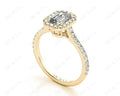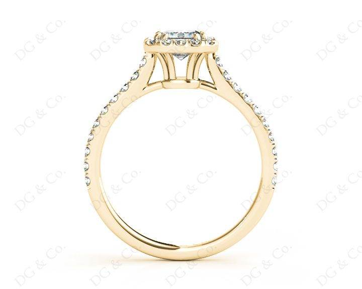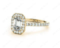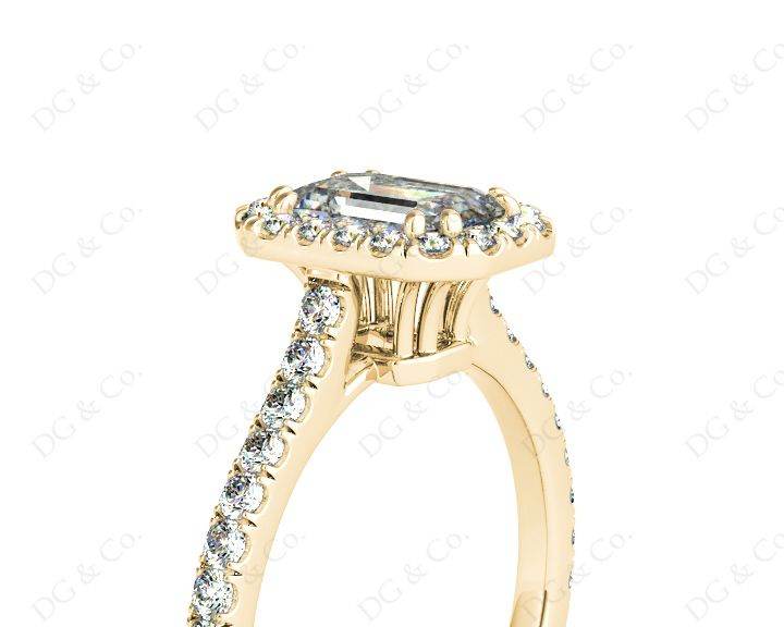 Halo Diamond Engagement ring with Emerald cut diamond in four claws Setting with Thirty-eight Round Brilliant Micro Pave Setting around the Centre Stone and Down the Shoulder.