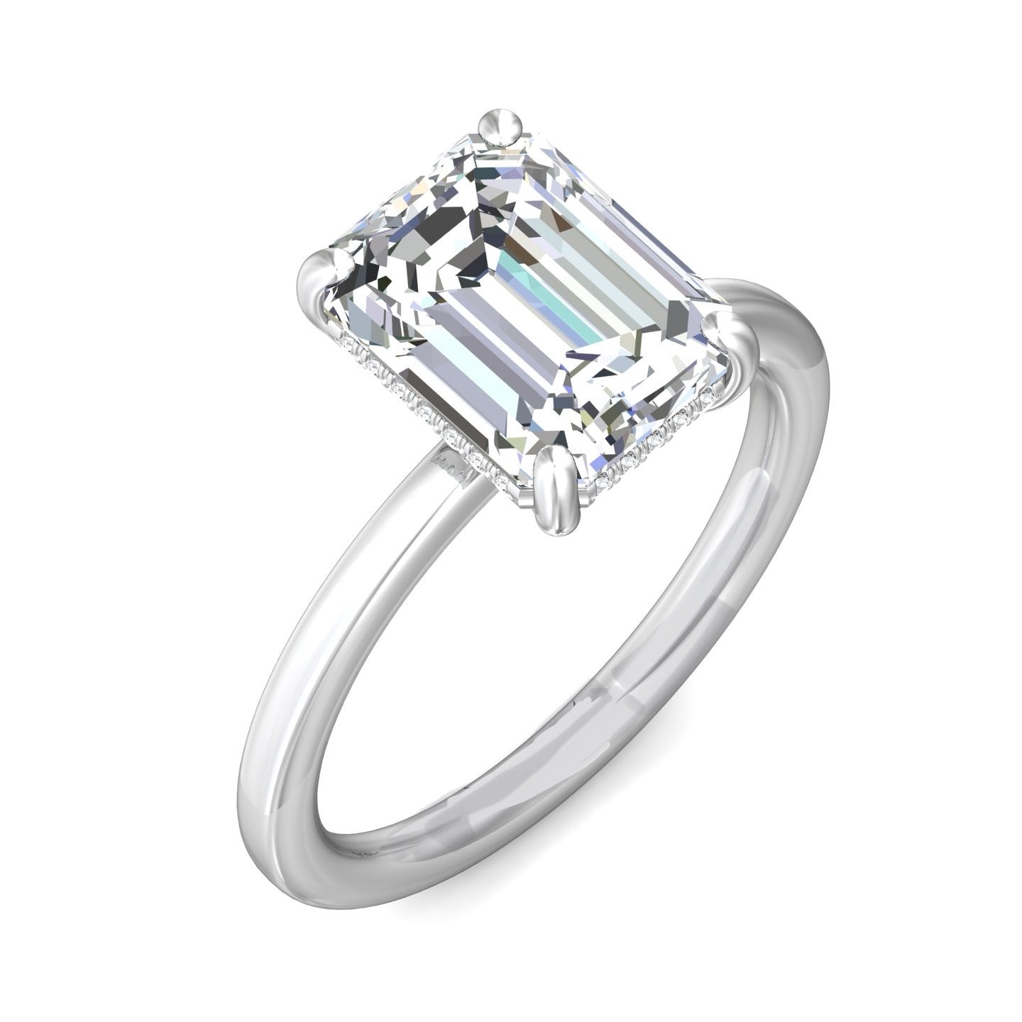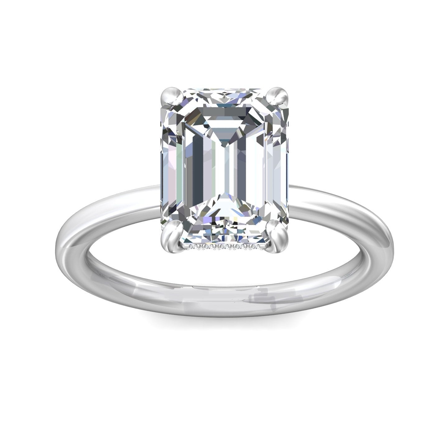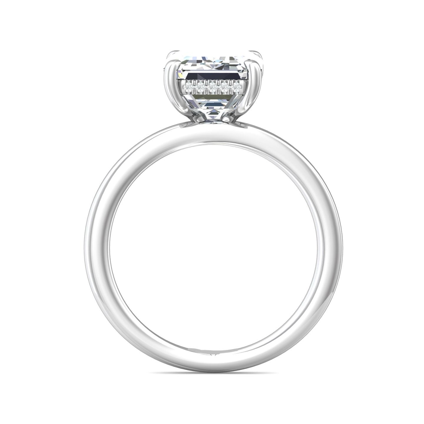 Seal your love with the elegant and delicate sparkle of this diamond engagement ring beautifully designed with a thin shank and luminous hidden halo underneath.