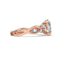 Capture your romance with this stunning engagement ring featuring a center diamond complemented by petal-inspired accent diamonds. The twisting design is features a marquise cut diamonds adding sparkle along one arm of the twist shank.