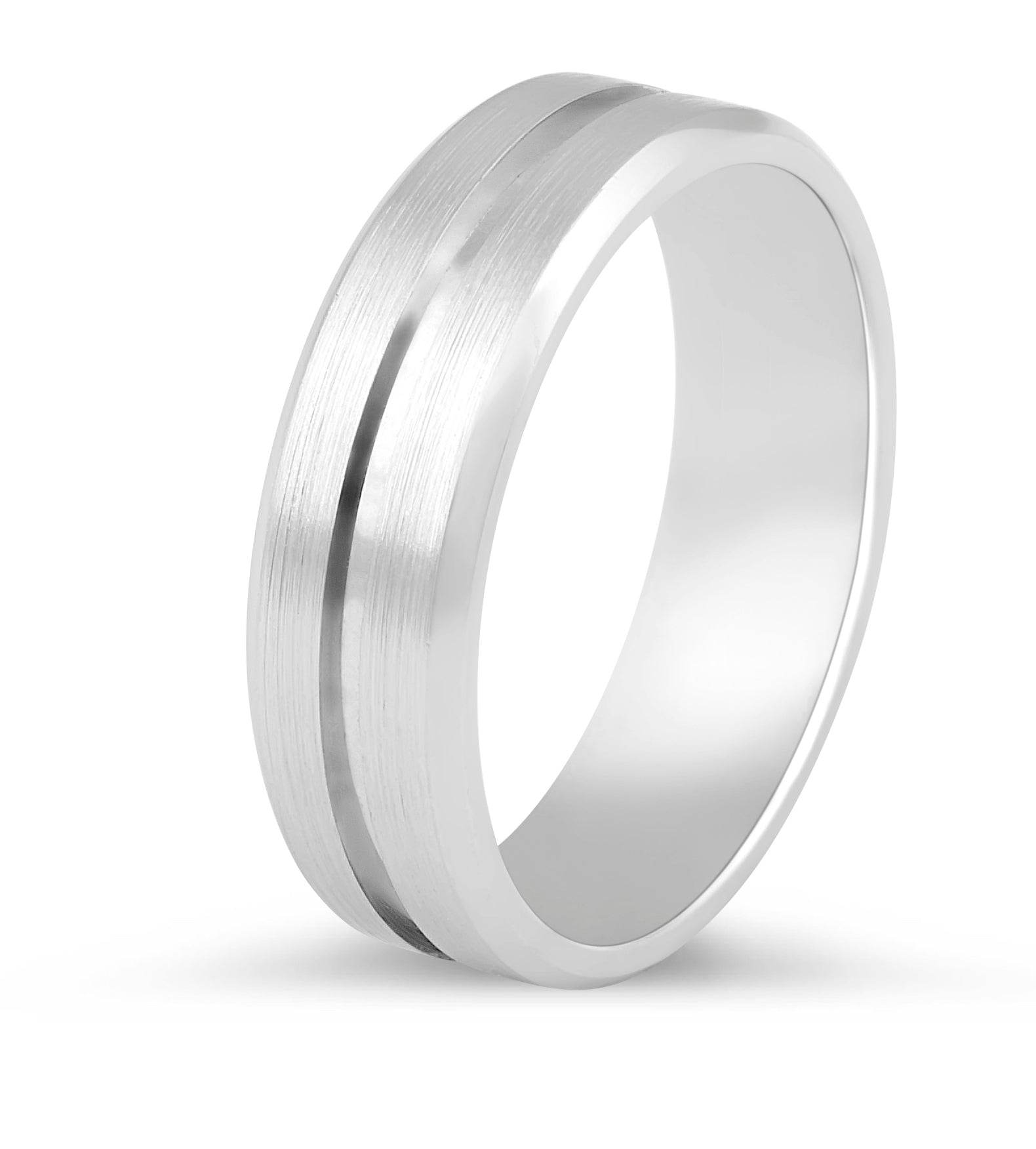Solid Modern brushed wedding band with polished inlay and beveled edges in 6 MM.