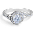 Halo Diamond Engagement Ring in 18 Karat White Gold Centre Diamond: Round Brilliant Cut 0.50 Carat D/SI GIA certificate 38 Side Diamonds Grain set 0.20 Carat WIDTH: 2.00 MM.