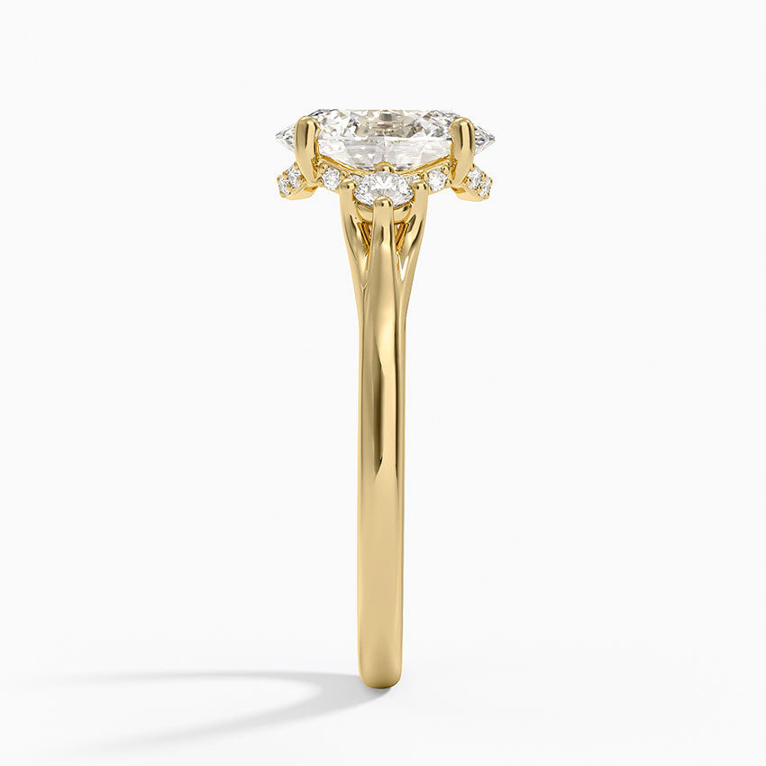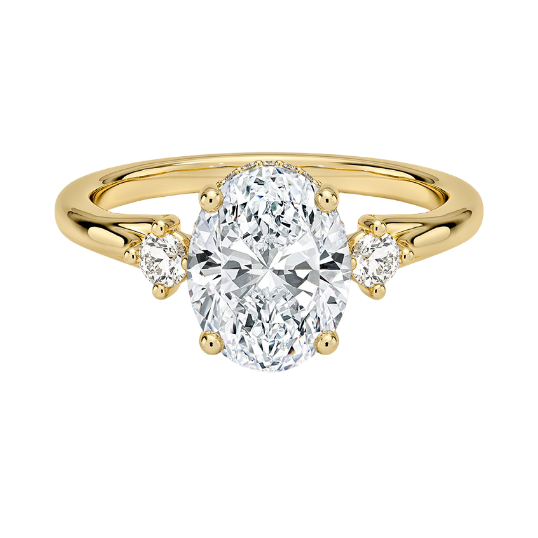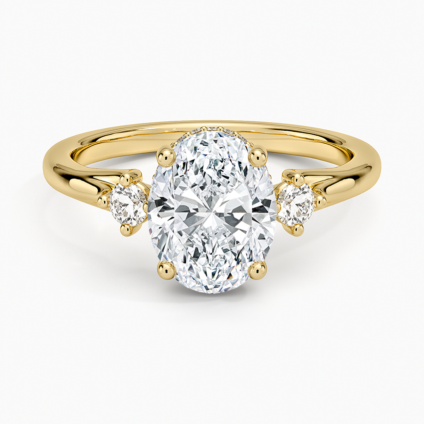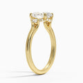 This gorgeous engagement ring is artfully Designed and crafted from a precious metal, and features gracefully wrapping shank. A trio of lab-grown diamonds gives it stunning sparkle as it catches the light.