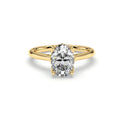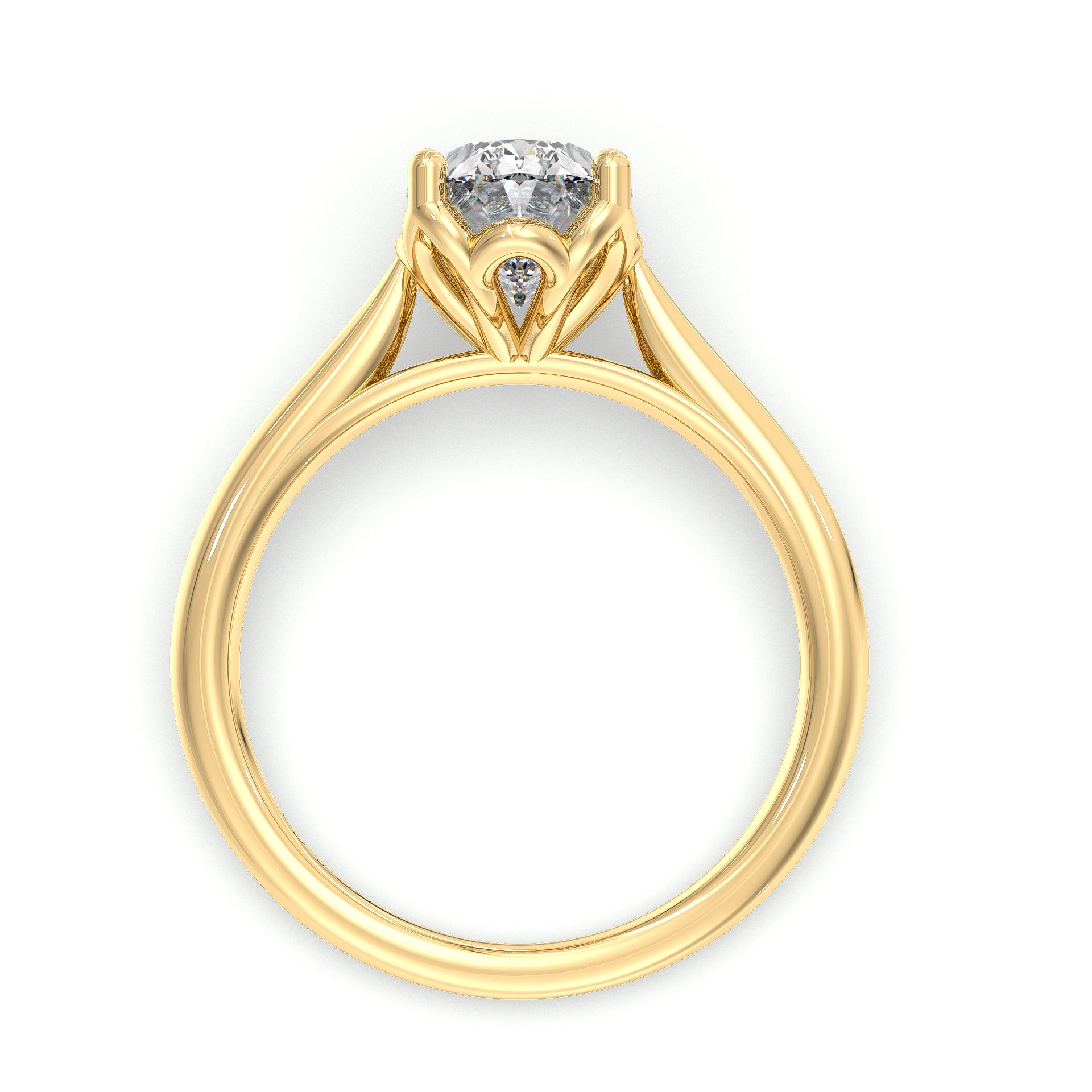 Elegant in its simplicity, this cathedral setting solitaire oval cut diamond engagement ring crafted in beautifully classic tulip basket for your choice of center diamond.