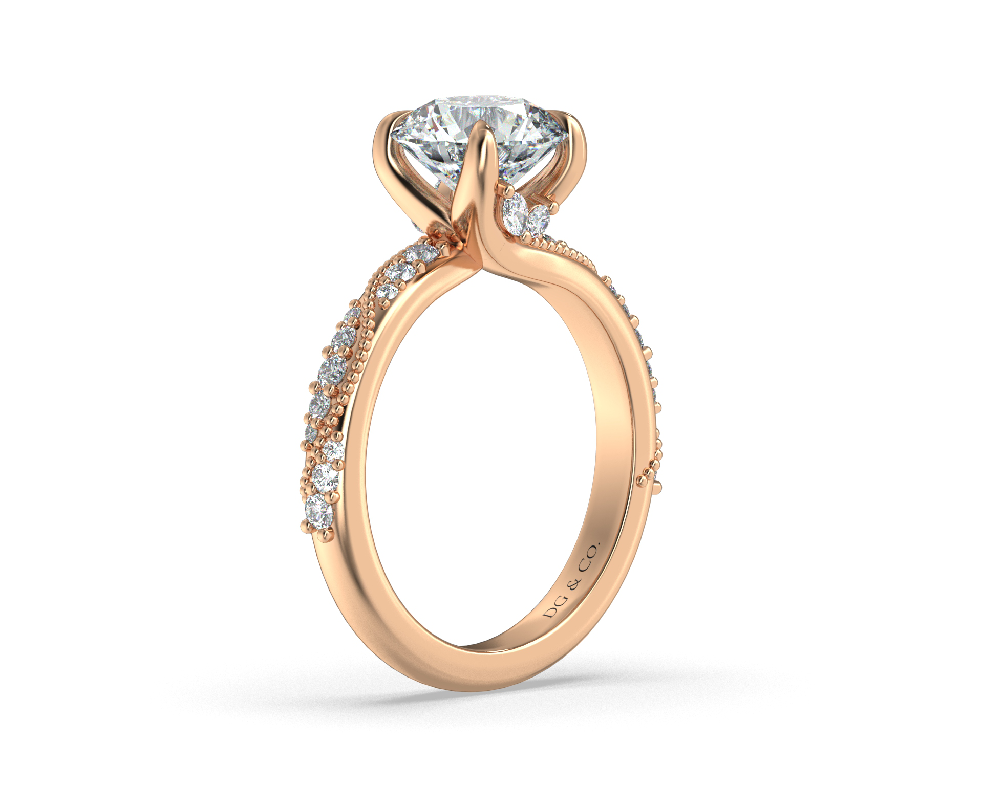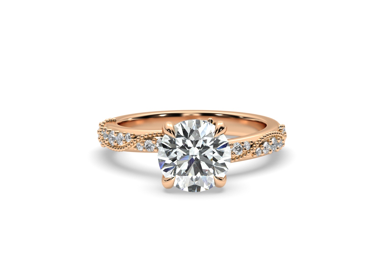 Celebrate your love with this stunning Vintage Style engagement ring, it features delicate lace-inspired detail along the profile, with scroll designs accenting the shoulder.