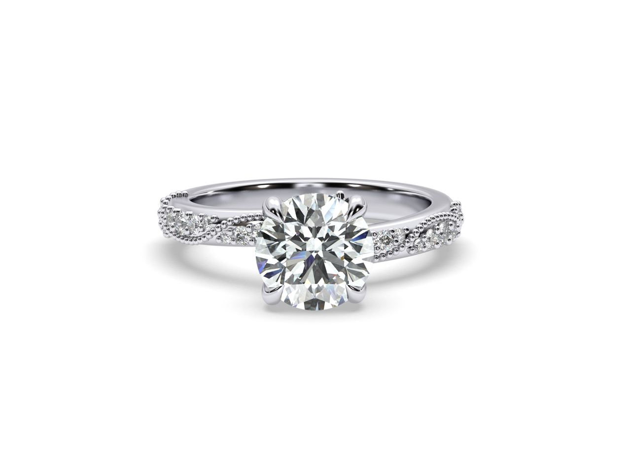 Celebrate your love with this stunning Vintage Style engagement ring, it features delicate lace-inspired detail along the profile, with scroll designs accenting the shoulder.