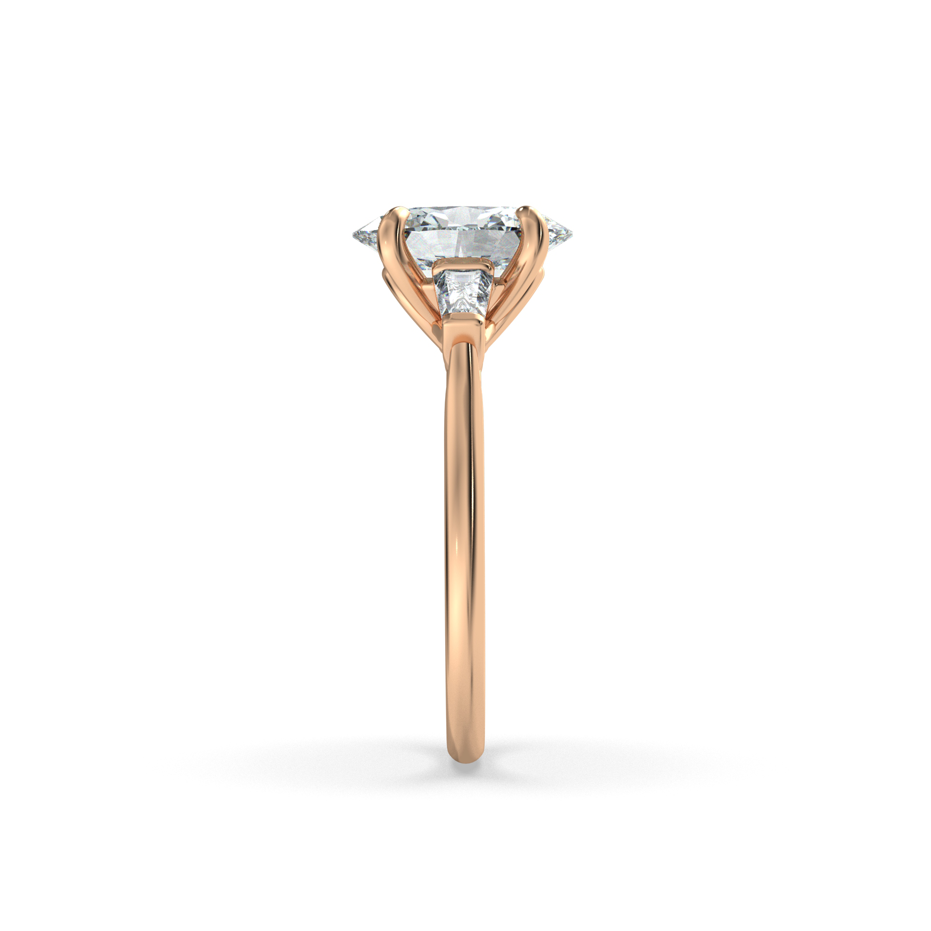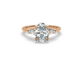 Romantic 3 stone oval cut diamond engagement ring settings represent the past, present and future of your love. Two pear shaped side stones grace the style for a modern look.
