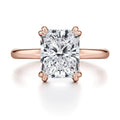 Simple and stunning, this engagement ring features a classic solitaire diamond held aloft in a lustrous design. The unique design features a twisted bridge, adding beauty and romantic symbolism to this ring.