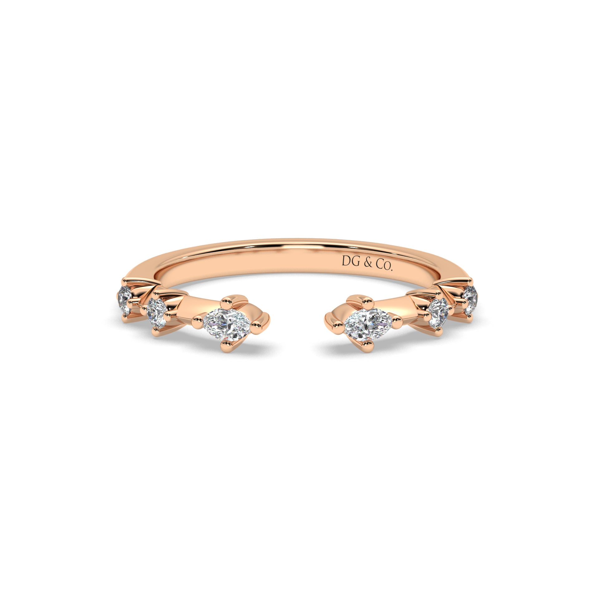 With an open band design, this round and marquise diamond ring is perfect for stacking. Wear it in a wedding set or with your favorite fashion rings.
