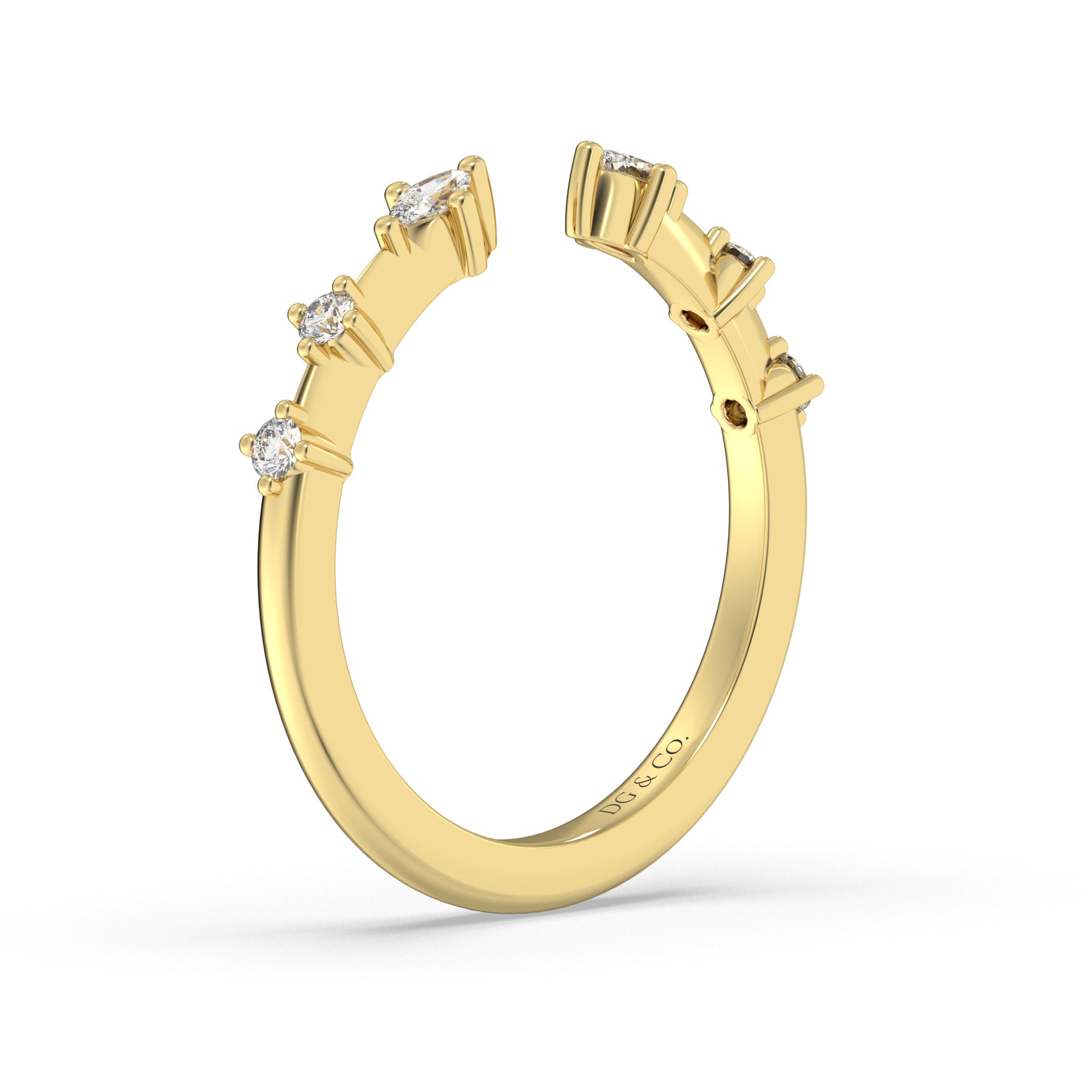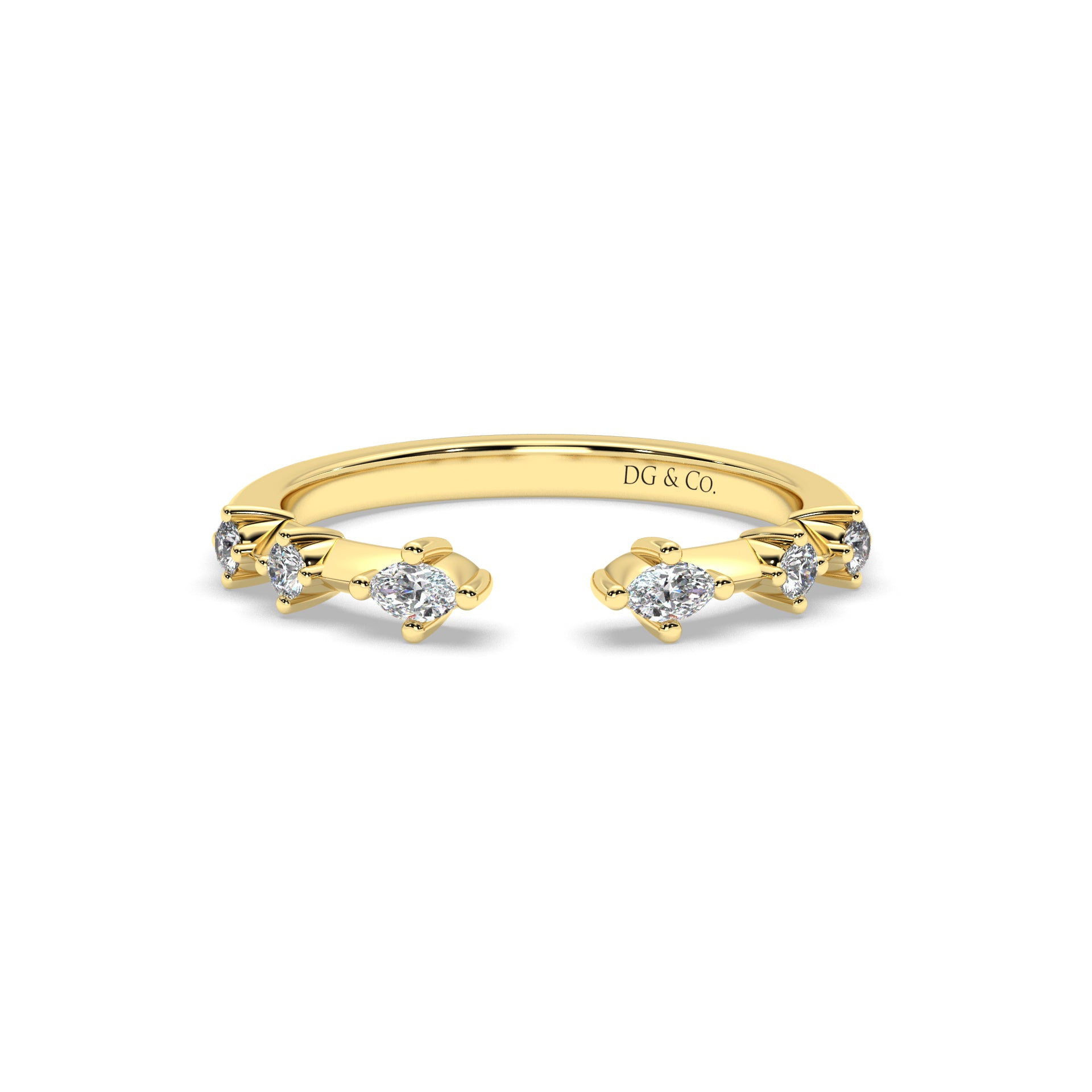 With an open band design, this round and marquise diamond ring is perfect for stacking. Wear it in a wedding set or with your favorite fashion rings.