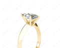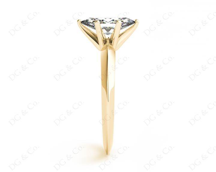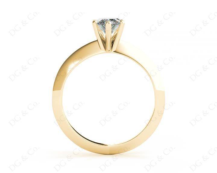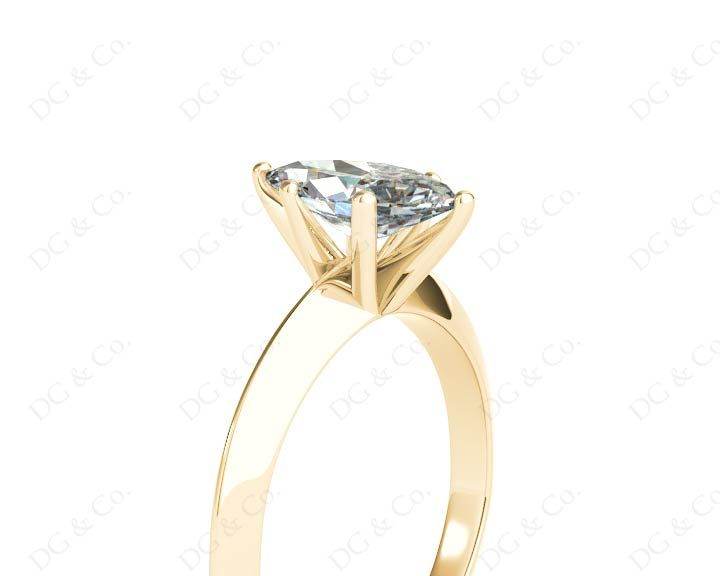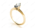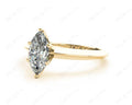 Solitaire diamond engagement ring with a marquise cut diamond in claw setting with knife-edge shoulders.