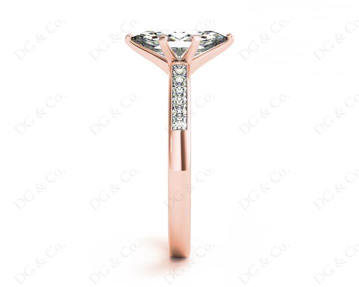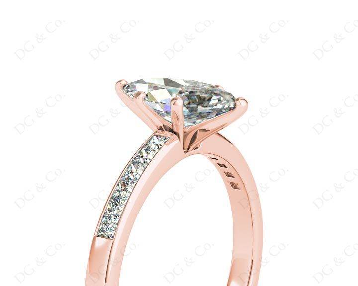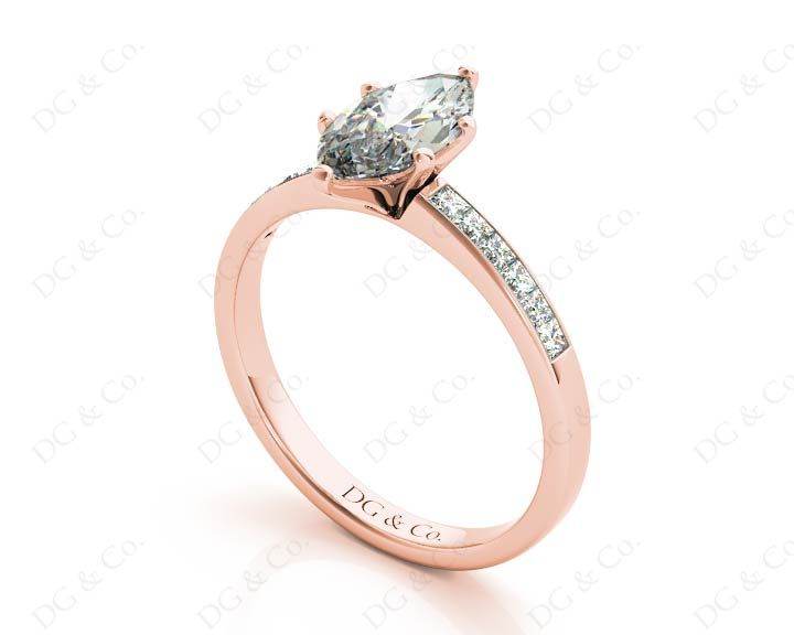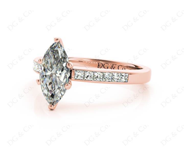 Diamond Engagement Ring with marquise cut diamond in six Claws Setting with twelve princess channel Set diamonds in to the band.