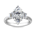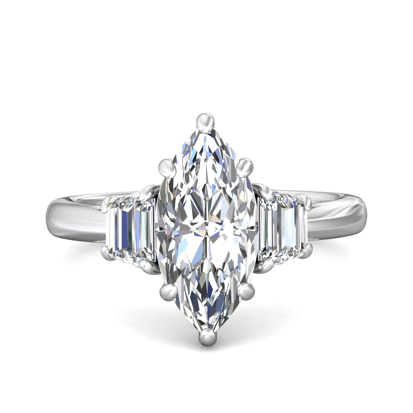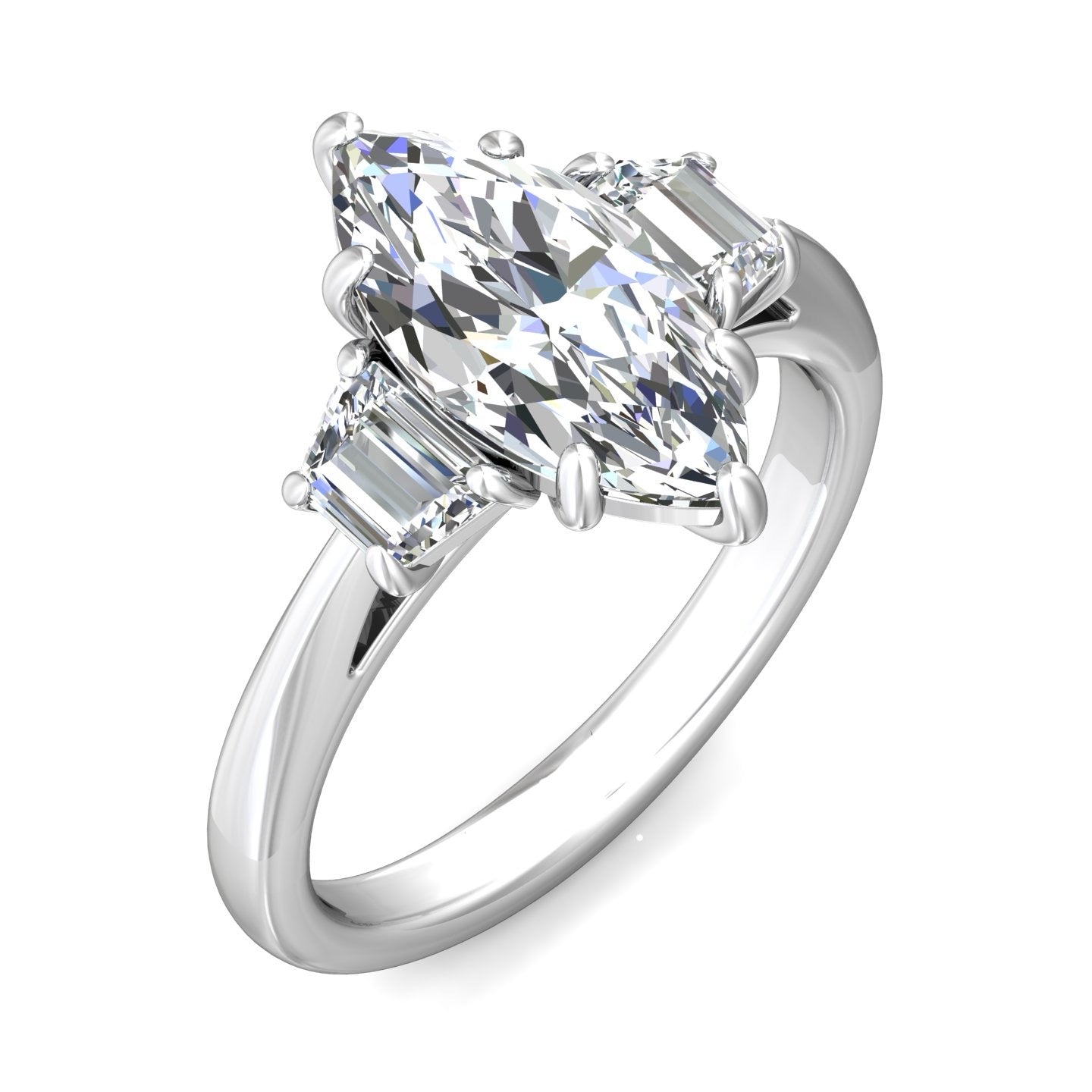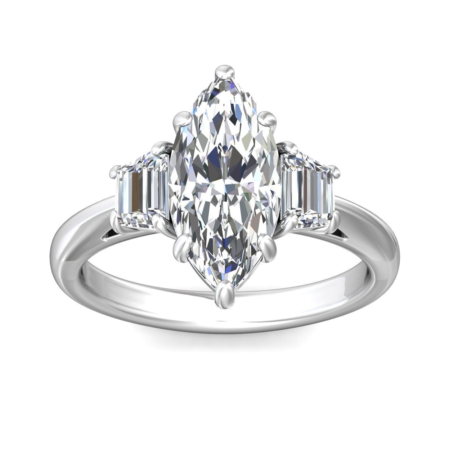 An enduring symbol of love, this 18k white gold engagement ring showcases two trapezoid-shaped side stones framing your marquise centre stone creating a beautiful balance of symmetry and timeless style.