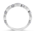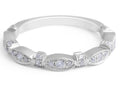 This vintage style 18 Karat white gold wedding band is beautifully set in a marquise setting with 33 round diamonds totalling 0.24 Carat. The slim band and grain setting gives the ring an elegant and timeless finish. Perfect for those looking for a classic design.